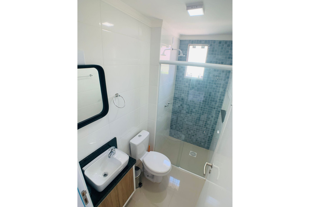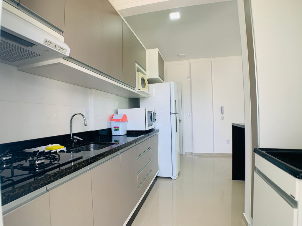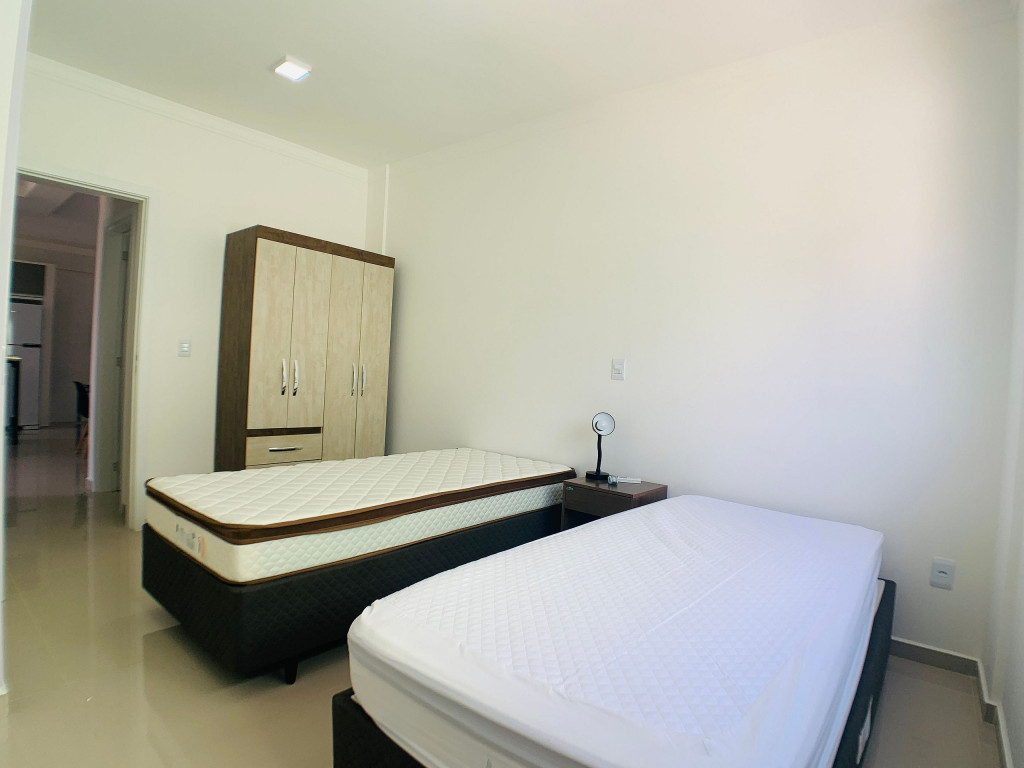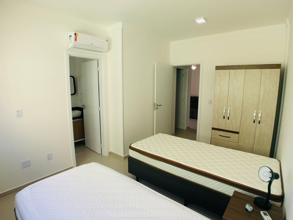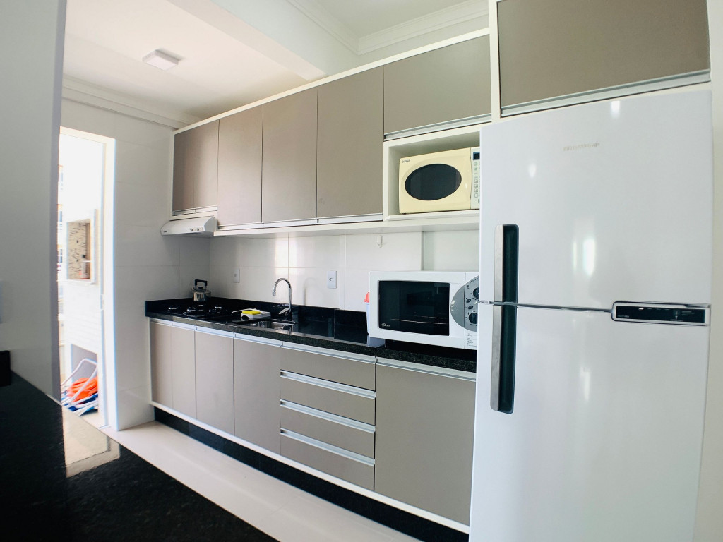 Belo apartamento, à 100 metros da praia, composto por duas suítes, sendo uma suíte com cama de casal e ar-condicionado e outra com duas camas de solteiro e ar-condicionado, banheiro social, sacada com churrasqueira e pia, cozinha completa, área de serviço com máquina de lavar e tanque. Possui uma vaga de garagem, conta com wi-fi e TV à cabo.