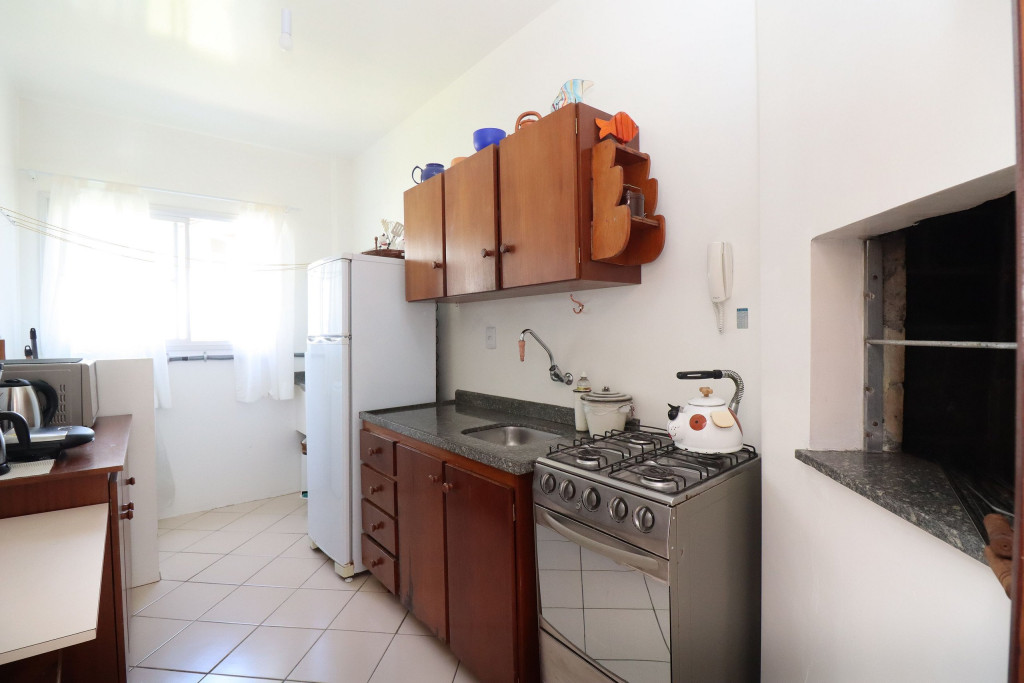 Belo apartamento, à 30 metros da praia, composto por dois dormitórios, sendo uma suíte com cama de casal e ar-condicionado, um quarto com duas camas de solteiro e ar-condicionado, banheiro social, varanda, cozinha completa, área de serviço com máquina de lavar e tanque. Possui uma vaga de garagem e conta com wi-fi.