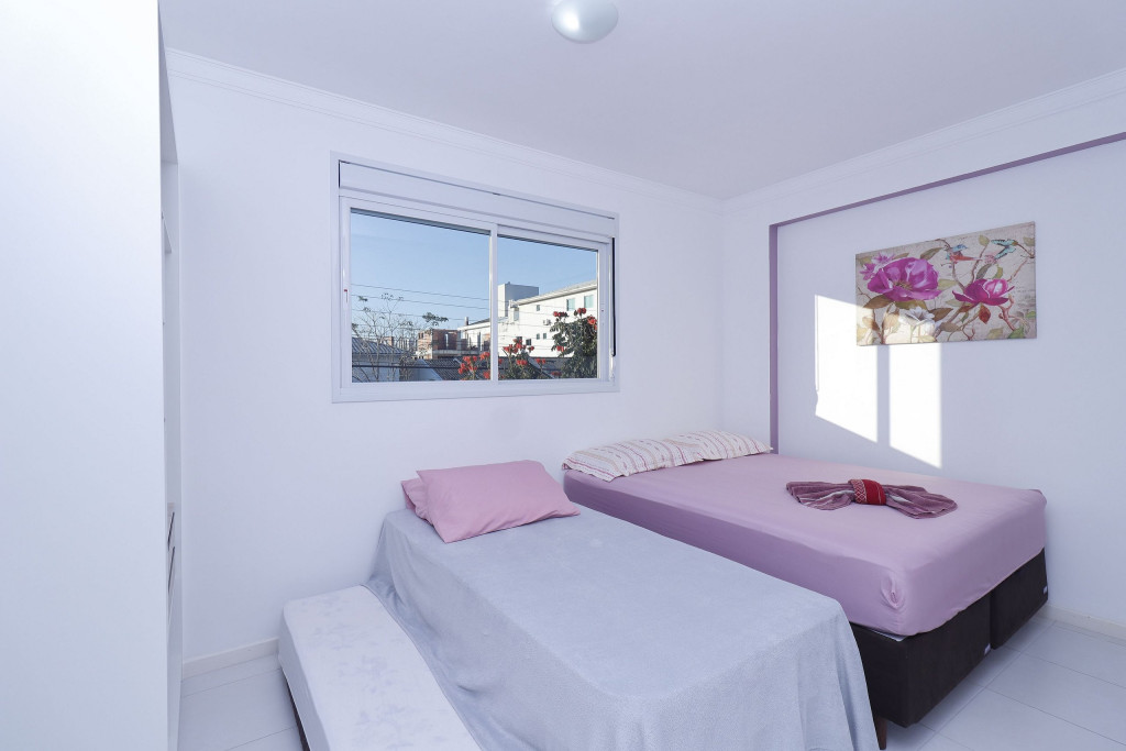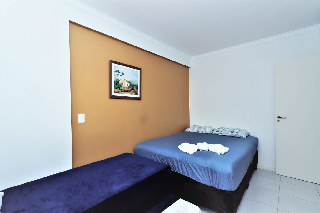 Belo apartamento, à 600 metros da praia, composto por duas suítes, sendo as duas com cama de casal, uma cama de solteiro com auxiliar e ar-condicionado, banheiro social, sacada com churrasqueira e pia, cozinha completa, área de serviço com máquina de lavar e tanque. Possui uma vaga de garagem, conta com wi-fi e TV à cabo.