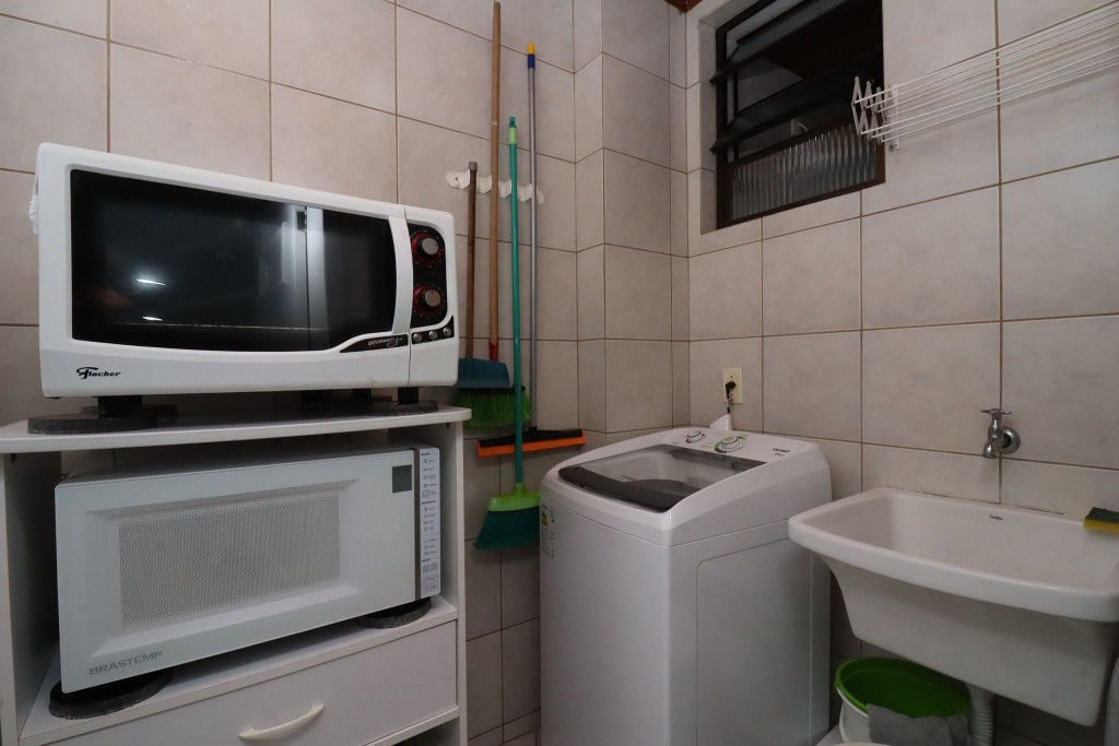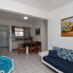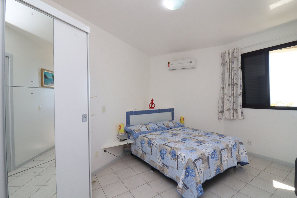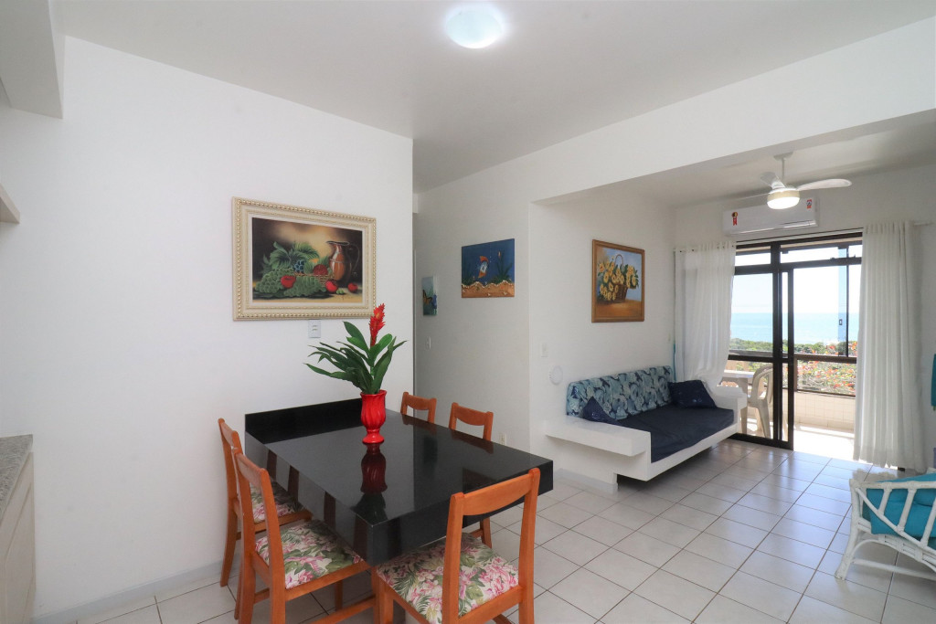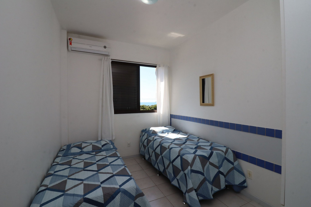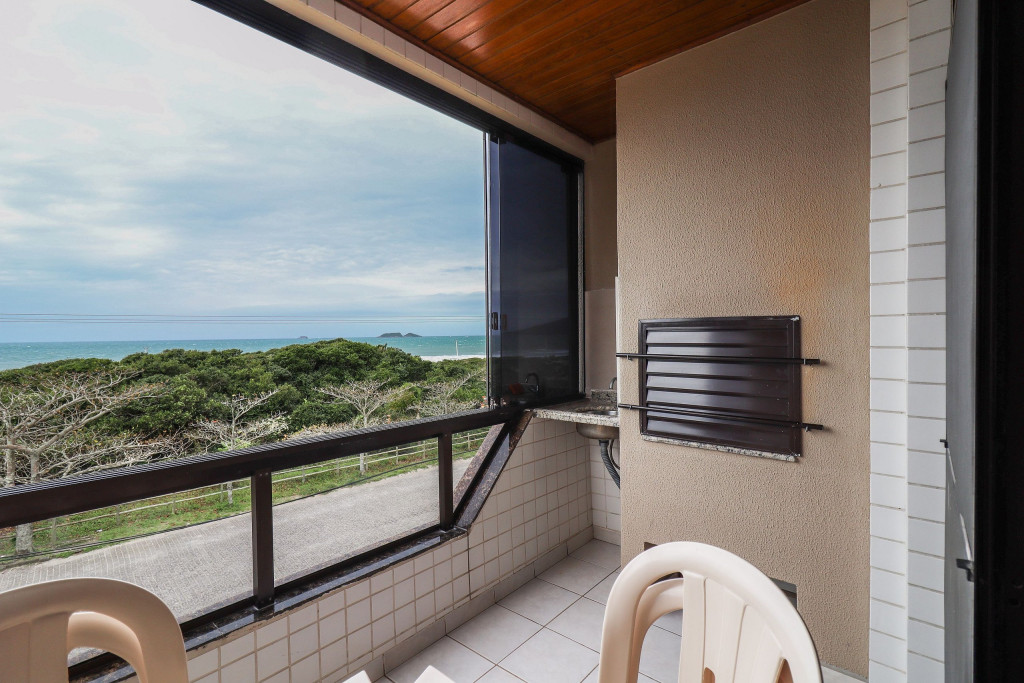 Belo apartamento, à 30 metros da praia, composto por dois dormitórios, sendo uma suíte com cama de casal e ar-condicionado, um quarto com duas camas de solteiro, cama auxiliar e ar-condicionado, banheiro social, sacada com churrasqueira e pia, vista para o mar, cozinha completa, área de serviço com máquina de lavar, tanque e varal.