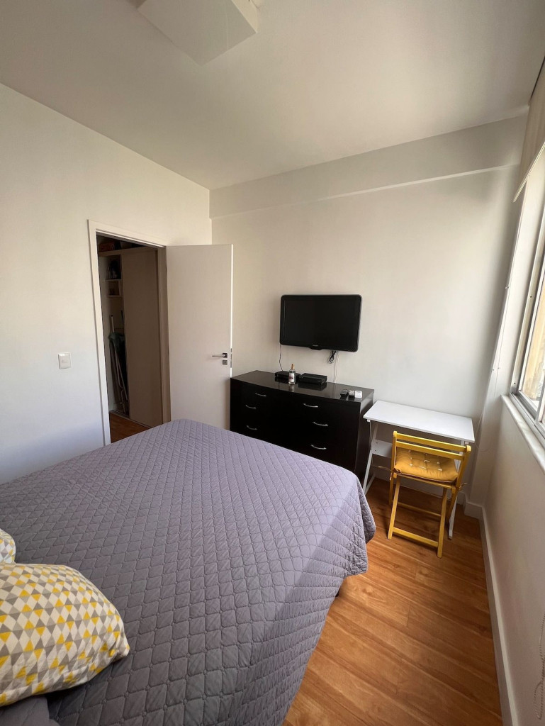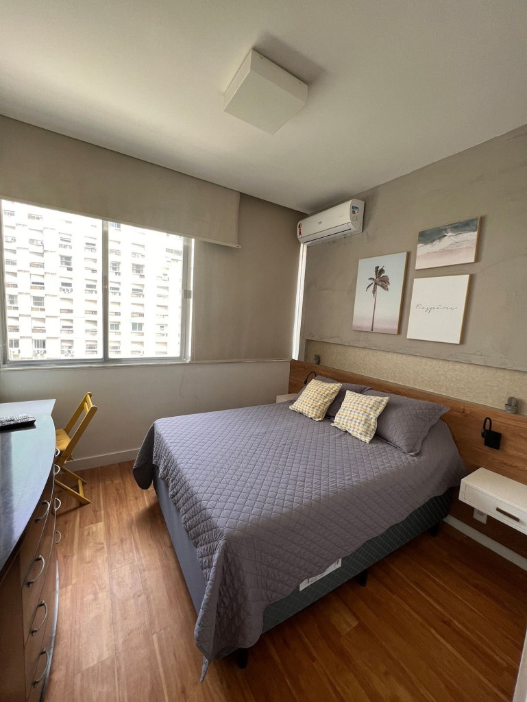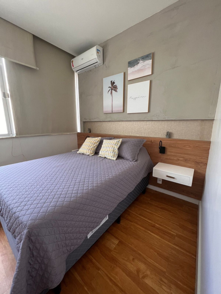 O apartamento é muito confortável e aconchegante. Preparamos com todo carinho para você se sentir em casa com todas as facilidades de um lar. A acomodação possui 1 quarto com 1 cama de casal, sofá cama, ar condicionado e ventilador de teto. Living com mesa para refeições, sofá cama. Banheiro completo e aconchegante, além de uma cozinha completa com todos os utensílios básicos necessários para tornar a sua estada confortável. Você ainda poderá contar com: * Wi-Fi * Smart Tv * Ar condicionado * Porteiro 24h * Geladeira * Ferro de passar * Secador de cabelo * Microondas * Cafeteira elétrica