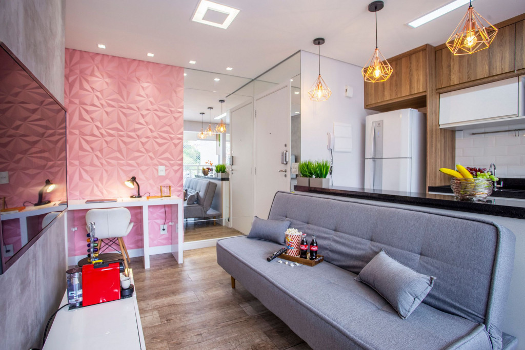 - Sofá-cama: Com um simples movimento, o sofá-cama se converte em uma cama de casal para uma noite de sono tranquila. Seus mecanismos de abertura e fechamento são fáceis de usar, permitindo uma transição suave entre as duas funções, é uma opção prática para acomodar vocês durante a noite.