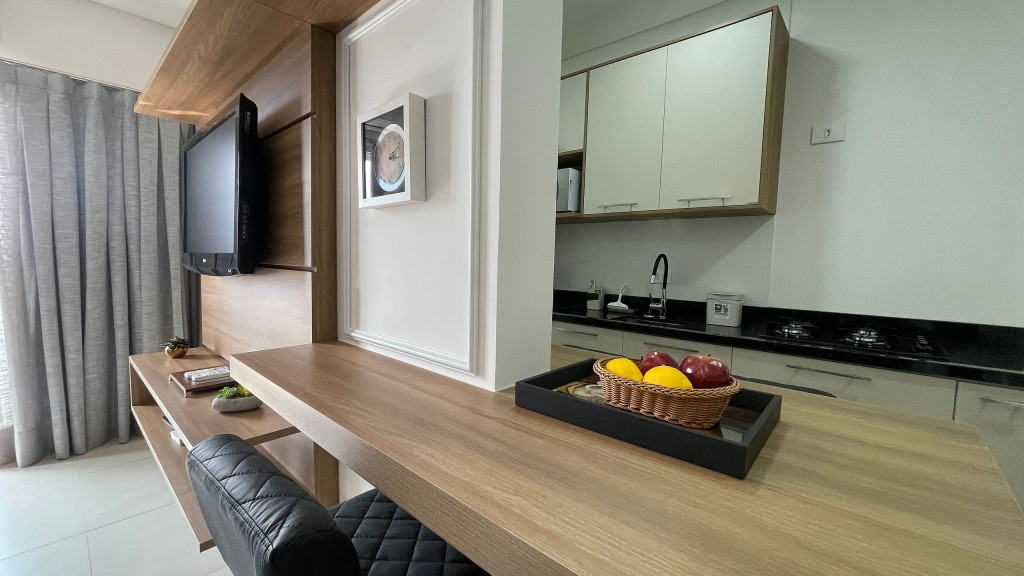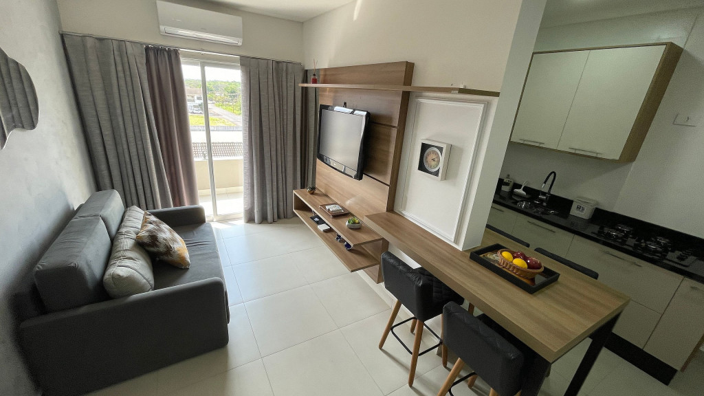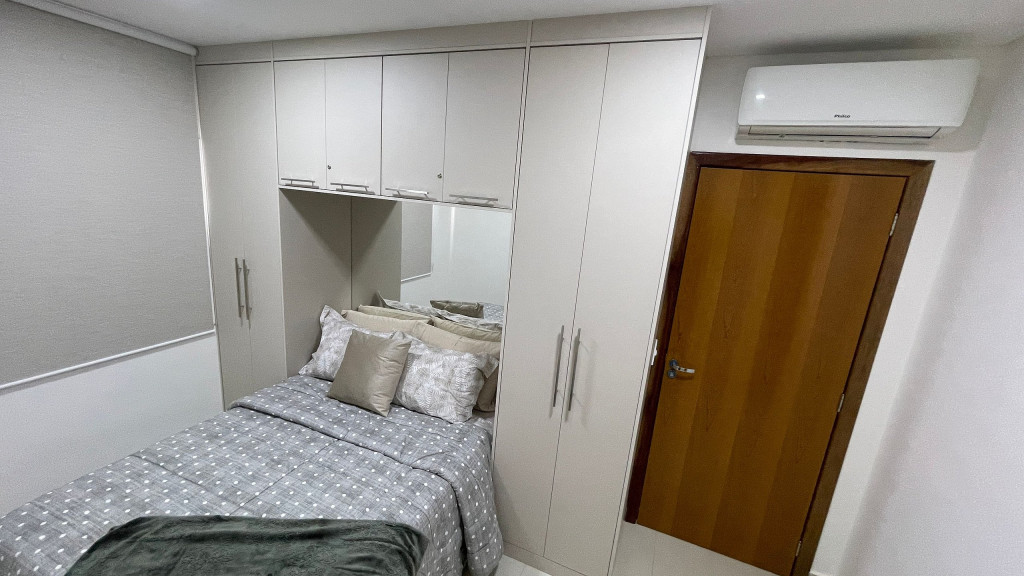 O imóvel conta com cama de casal e um sofá cama na sala. Ambos os ambientes climatizados e com o maior conforto para nossos hospedes. Ele conta com uma máquina lava, Smart tv, wifi de alta velocidade, fogão, cozinha equipada e garagem dentro do prédio e segurança. Oferecemos roupa de cama e banho para cada ocupante da reserva.