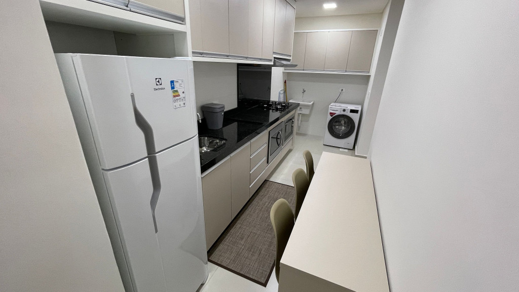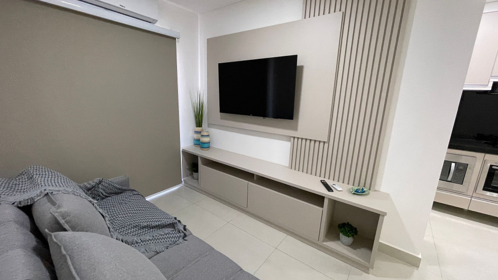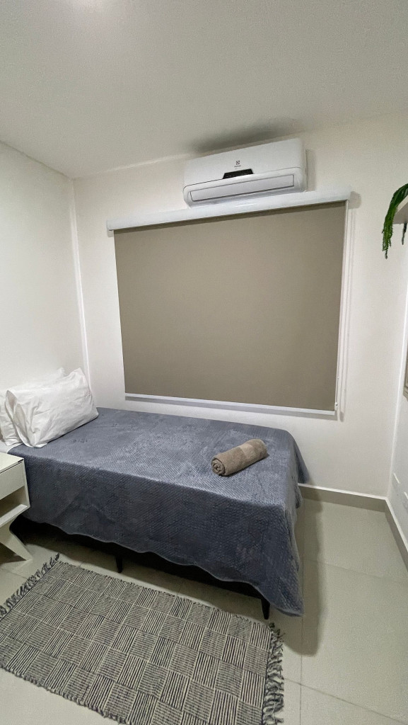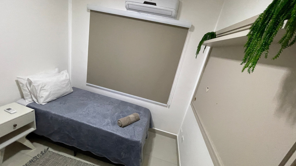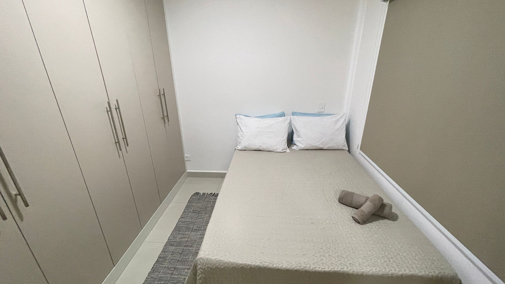 O imóvel conta com cama de casal, uma de solteiro e um sofá cama na sala. Ambos os ambientes climatizados e com o maior conforto para nossos hospedes. Ele conta com uma máquina lava e seca, Smart tv, wifi de alta velocidade, forno e fogão, microondas, cozinha equipada e garagem dentro do prédio e segurança. Oferecemos roupa de cama e banho para cada ocupante da reserva.