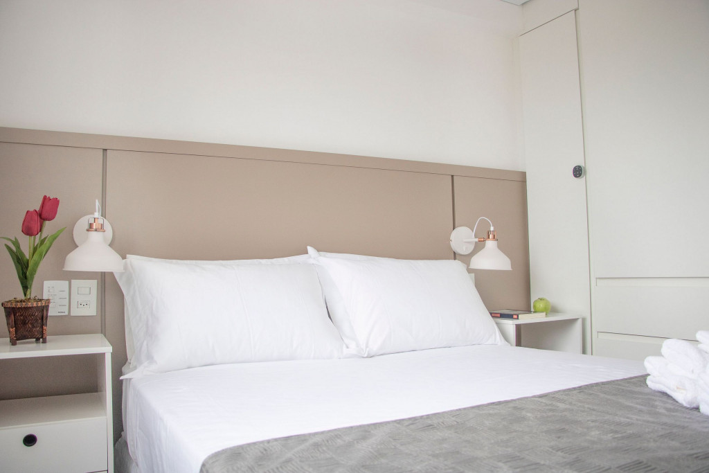 - Descrição detalhada do quarto: Um quarto com uma cama de casal. Além disto, nós disponibilizamos o enxoval completo de cama e banho. Desfrute do conforto dos lençóis macios e das toalhas felpudas que disponibilizamos para você. Nossa locação oferece um enxoval completo para garantir o máximo de conforto durante a sua estadia.