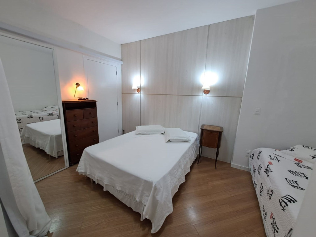 Suíte: Cama de casal, cama auxiliar de solteiro, cama de solteiro, ar-condicionado, roupeiro, cômoda e armário com espelhos;O apartamento possui um espaço interno de 60 metros quadrados e estacionamento coberto para 1 carro. A cozinha é completa com: fogão, forno elétrico, geladeira, louças e talheres, utensílios de cozinha e eletrodomésticos de primeira linha, como chaleira e elétrica e sanduicheira. A sala de estar possui sofá e TV Smart 40’’. Além disso, o apto oferece: Internet WI-FI de 130 mega para home-office, rouparia de cama, toalhas de banho, área de serviço com máquina de lavar roupa, aspirador e outros utensílios. Tudo isso para um melhor conforto dos nossos hóspedes, para que se sintam em casa, em um perfeito refúgio para descansar e desvendar o que há de melhor em Brusque/SC.