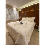 O APT 327 foi recém reformado, fica no 3º andar, é nascente, e tem 2 quartos, um com cama de casal e de solteiro, e outro, uma suíte, com cama queen, closet. A sala é reversível, com uma porta de correr que a torna privativa, com sofá cama, TVsmart. Ao todo, são 2 banheiros, cozinha equipada, ambiente com iluminação direta e indireta, totalmente climatizado, maravilhosa varanda com tela de proteção, perfeita para tomar um vinho! Também disponibilizamos roupa de cama e banho sem custo adicional.