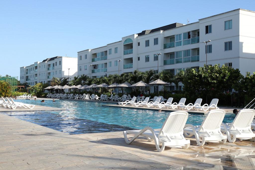 • Piscinas externas;• Quadras esportivas;• Parquinho infantil e brinquedoteca;• Sala de jogos e de ginástica;• Área de estar e de refeições;• Estacionamento gratuito sem manobrista com 1 vaga disponível por apartamento;• Cozinha com utensílios;• Wi-Fi gratuito;• Smart TV (NETFLIX INCLUSO)• Ar condicionado split;• Chuveiro elétrico;• Máquina de lavar.