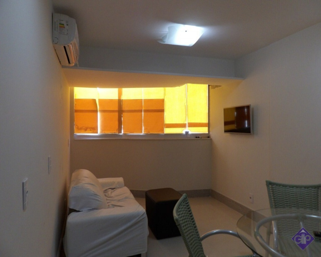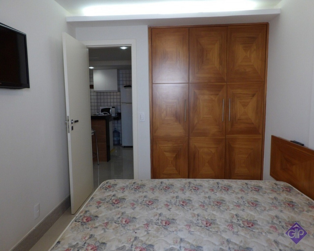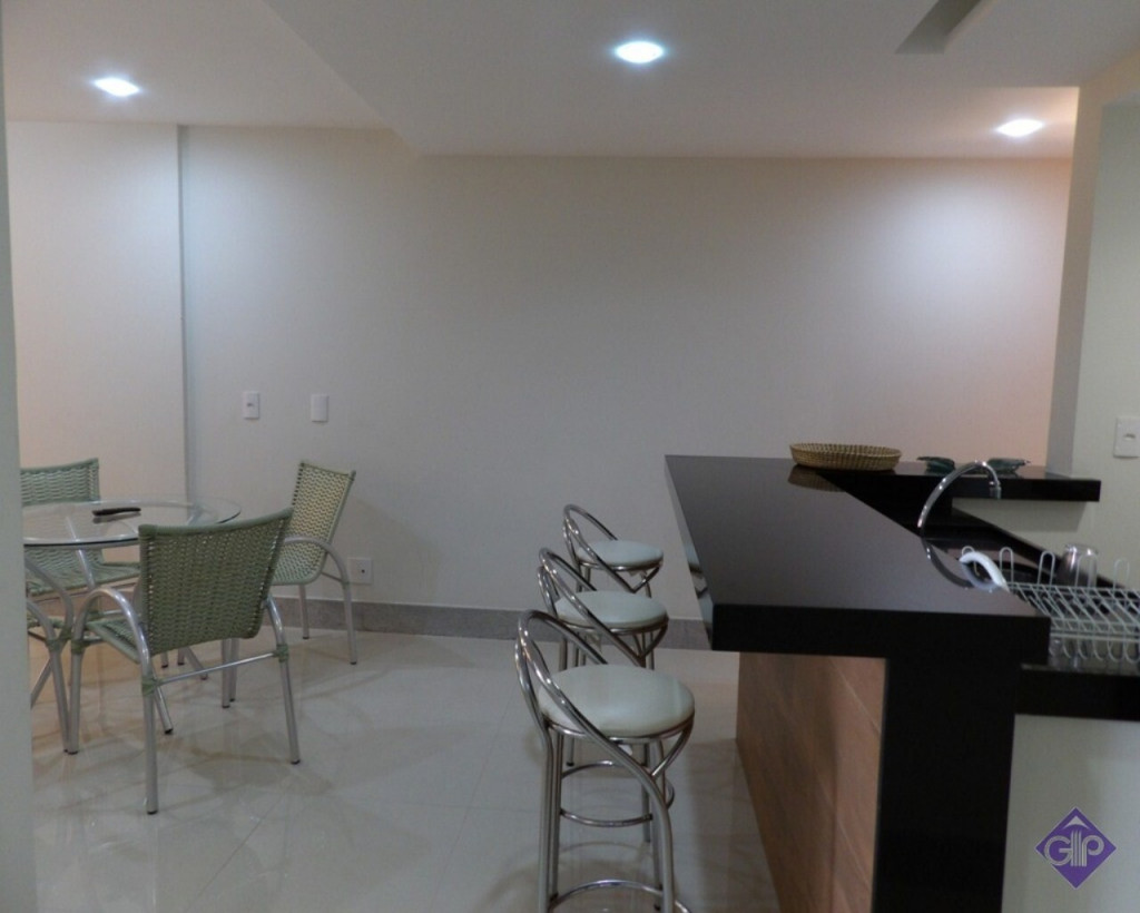 Apartamento para aluguel temporada no Centro de Guarapari com quarto/sala, cozinha americana, banheiro social, varanda, mobiliado, área de serviço, portaria 24 horas, 3 elevadores, uma vaga de garagem.