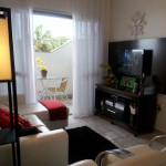 Apartamento para Aluguel Temporada em Guarapari na Enseada Verde com 2 quartos sendo uma suíte, sala, cozinha, banheiro social, varanda, vaga de garagem, área lateral.