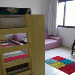 Apartamento para aluguel temporada na Enseada Azul em Guarapari com 2 quartos sendo uma suíte, 2 salas, cozinha, banheiro social, varanda, área de serviço, mobiliado, elevador, uma vaga de garagem, área de lazer com piscina e churrasqueira.