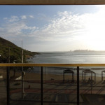 O apartamento fica de frente para a praia e possui uma linda vista para o mar.