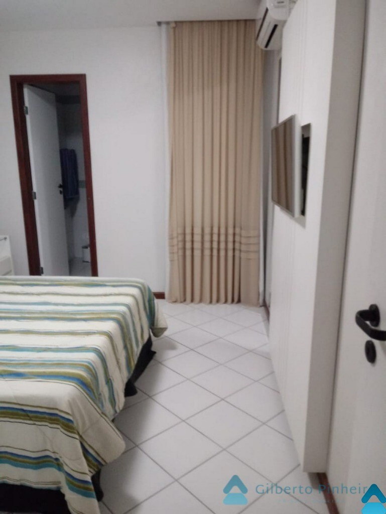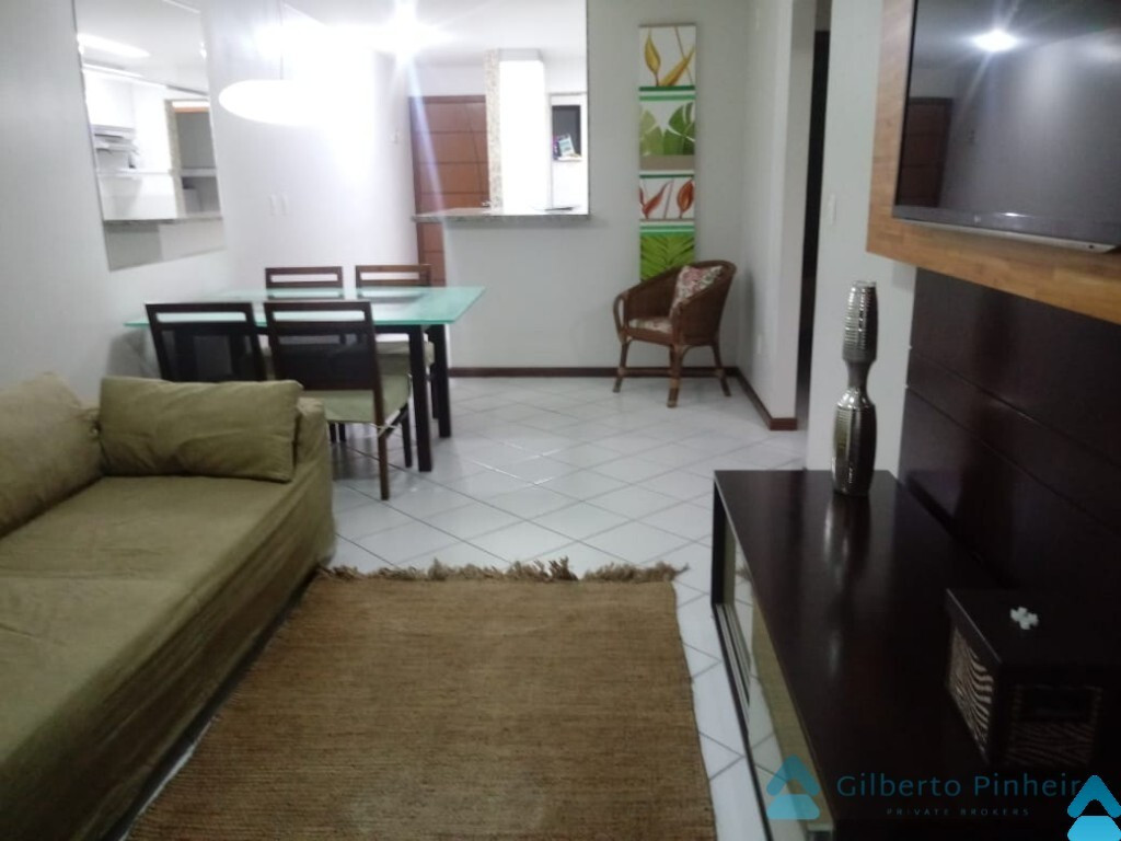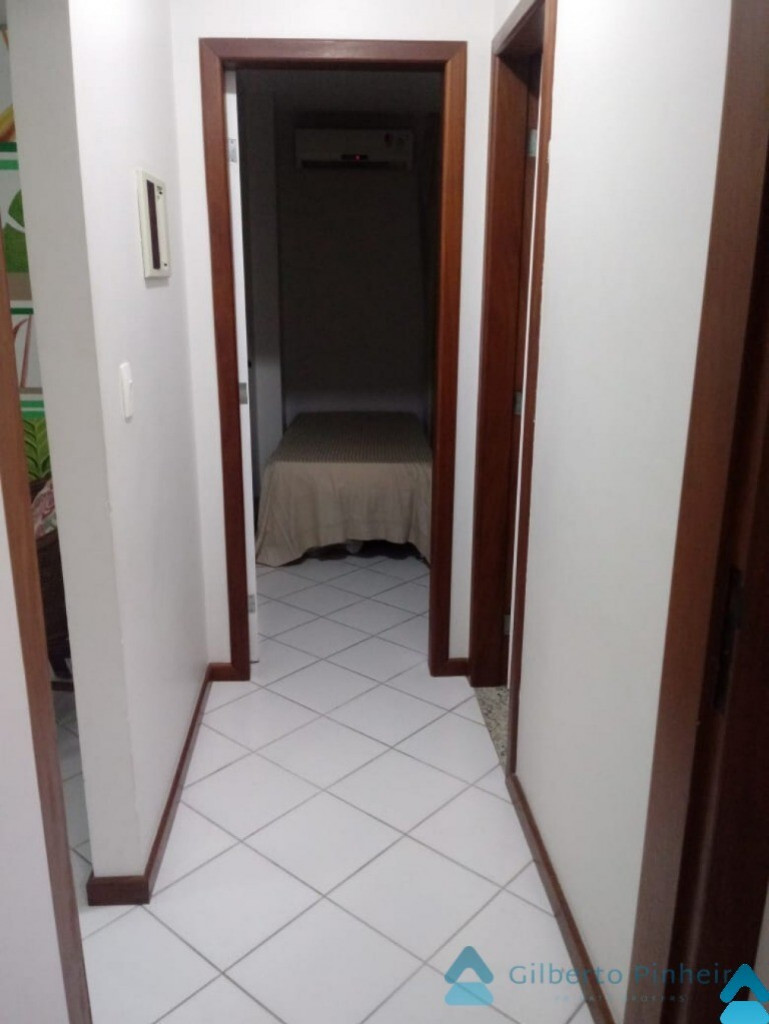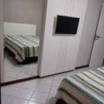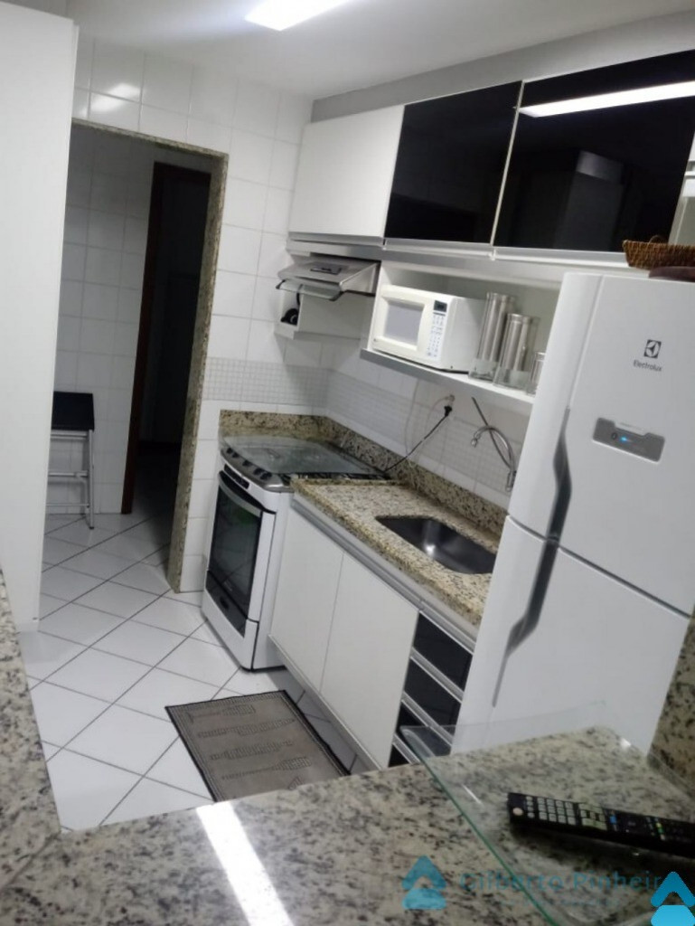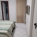 Apartamento para aluguel temporada no Centro de Guarapari com 2 quartos sendo uma suíte, sala ampla, varanda com vista para o mar, banheiro social, cozinha, área de serviço, quarto de empregada e uma vaga de garagem.