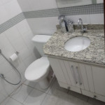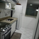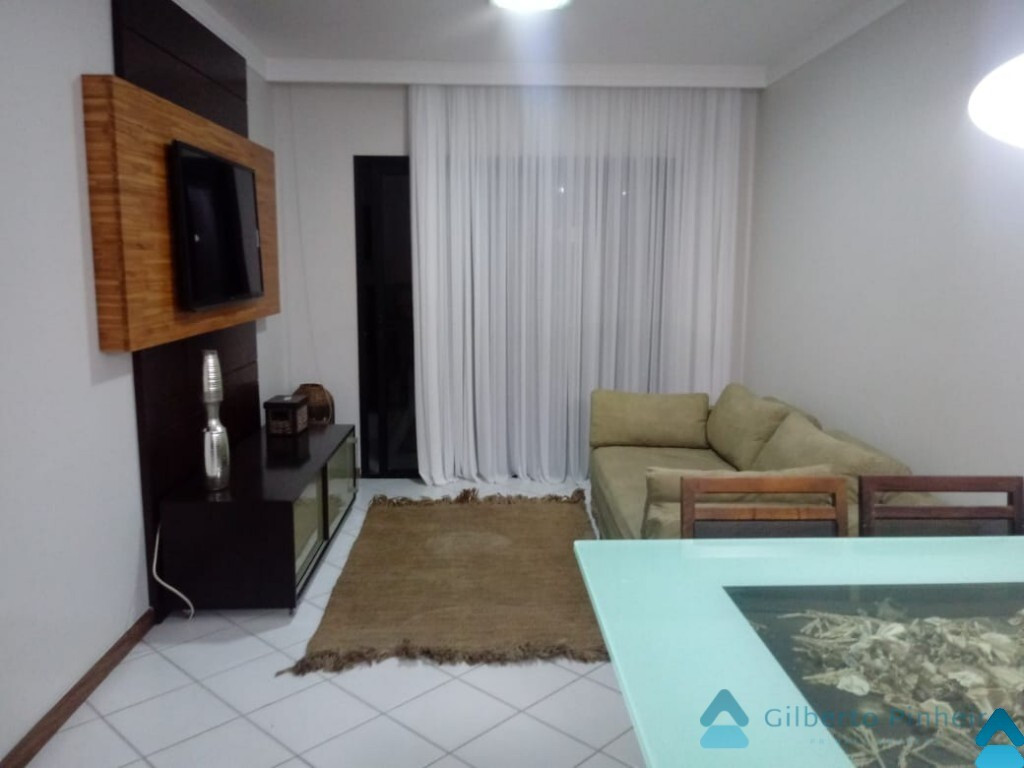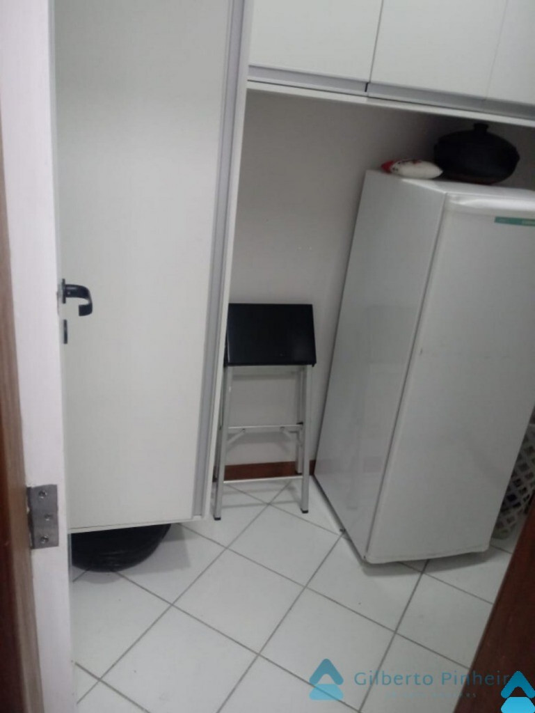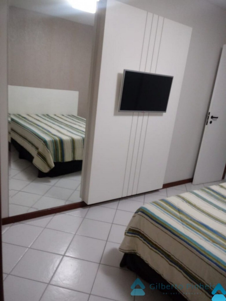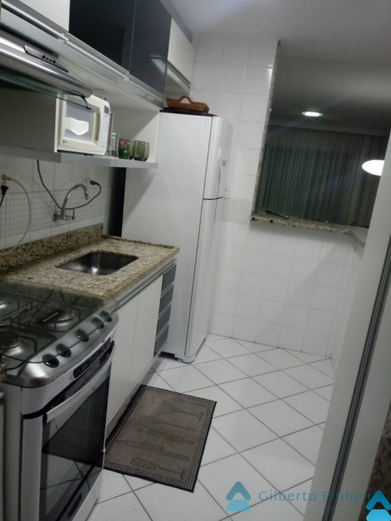 Apartamento para aluguel temporada no Centro de Guarapari com 2 quartos sendo uma suíte, sala ampla, varanda com vista para o mar, banheiro social, cozinha, área de serviço, quarto de empregada e uma vaga de garagem.