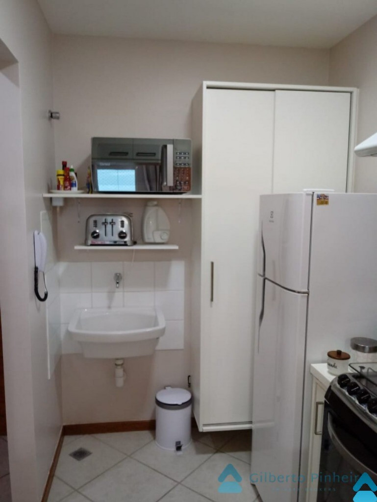 Apartamento para aluguel temporada no Centro de Guarapari com ótima localização composto de uma suíte, sala de estar, cozinha, lavabo, varanda, área de serviço, vista para o mar, portaria 24 horas, 3 elevadores e uma vaga de garagem. Possui uma área de lazer completa com piscina, churrasqueira, salão de festas e sauna.