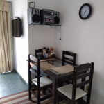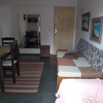 Apartamento para aluguel temporada no Centro de Guarapari composto de quarto, sala de estar, cozinha, mobiliado e uma vaga de garagem.