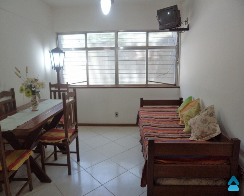 Apartamento para aluguel temporada no Centro de Guarapari composto de quarto, sala, cozinha, banheiro social, mobiliado e estacionamento.