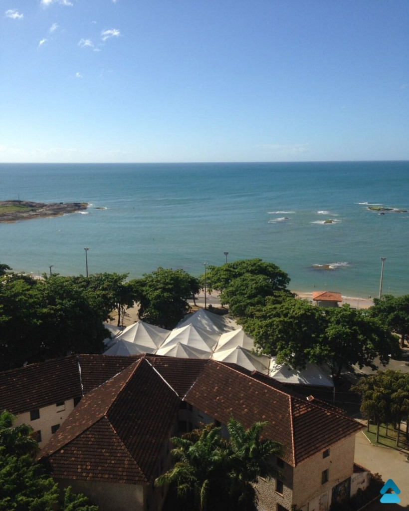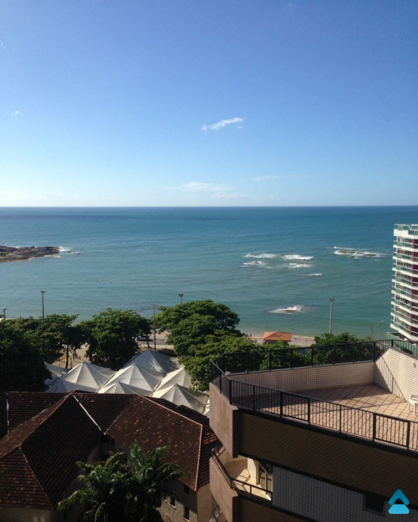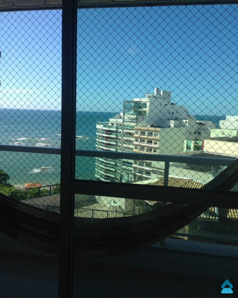Apartamento para aluguel temporada no Centro de Guarapari composto de 3 quartos sendo uma suíte, sala, cozinha, banheiro social, varanda, área de serviço, vista para o mar, mobiliado, sol da manhã, portaria 24 horas, 2 elevadores e 3 vagas de garagem.
