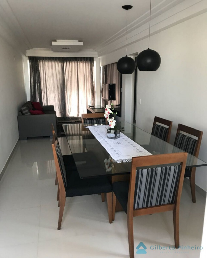 Apartamento para aluguel temporada no Centro de Guarapari composto de 3 quartos sendo duas suíte, sala de estar, cozinha, banheiro social, varanda, área de serviço, frente, mobiliado, 2 elevadores, portaria 24 horas e 2 vagas de garagem.