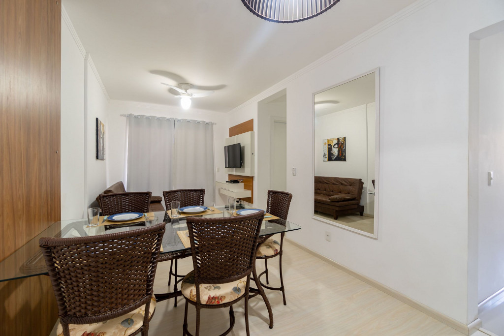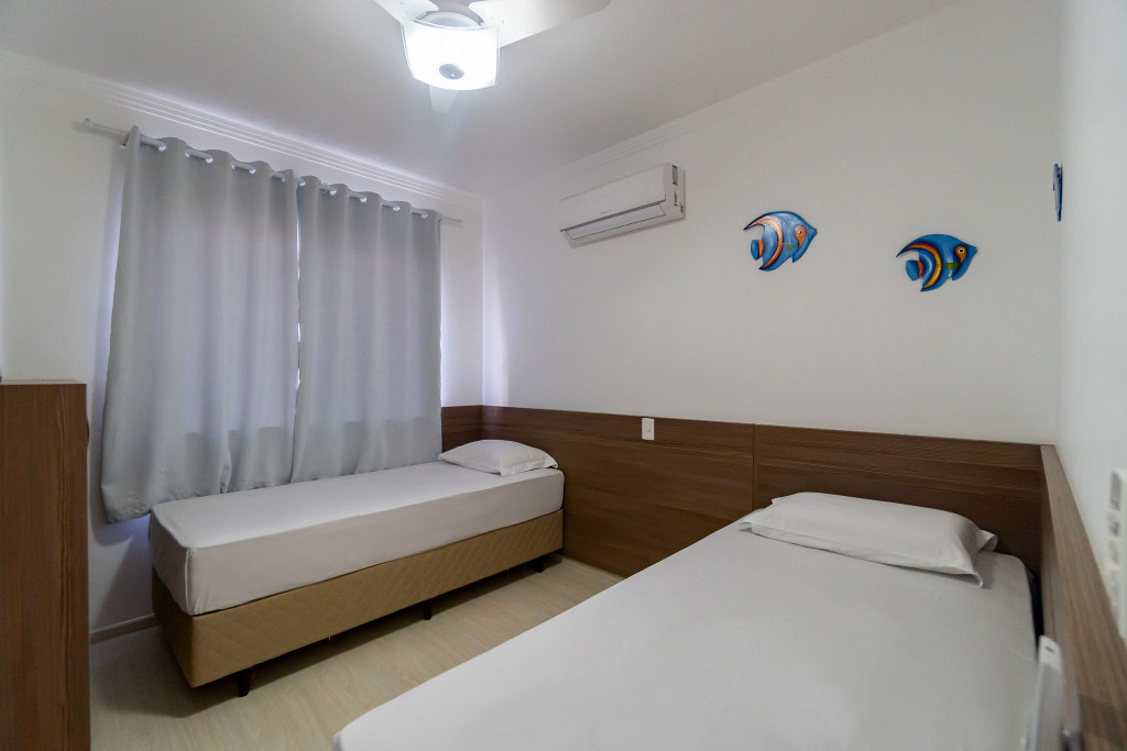O apartamento 101 do Residencial Florenza acomoda até 6 pessoas (capacidade máxima incluindo crianças de qualquer idade) em 02 dormitórios, sendo uma suíte com cama de casal e quarto com 02 camas de solteiro mais 1 cama auxiliar e sofá-cama para 01 pessoa na sala. Os quartos contam com ar-condicionado. O imóvel possui cozinha completa e equipada, área de serviço, sala de estar e jantar, banheiro social, sacada com churrasqueira e vista para a rua. (Solicite inventário completo para nossa equipe).Para comodidade de nossos hóspedes, também oferecemos:- Wi-Fi com excelente velocidade;
