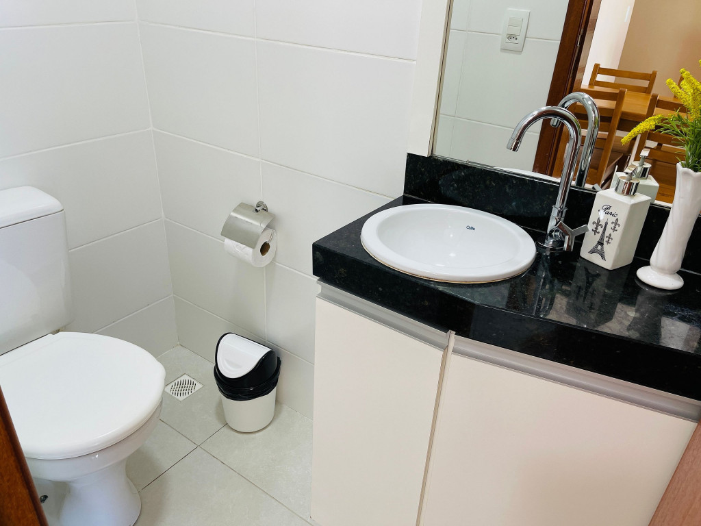 O apartamento é composto por uma enorme varanda, sala com 2 ambientes, suíte completa (1 quarto com banheiro), cozinha totalmente equipada e lavabo. Oferecemos uma vaga de garagem no prédio com portão automático e WI-FI disponível em todo o apartamento.