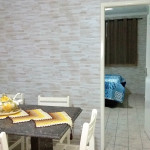 1 Quarto com 1 Cama casal, 1 beliche, travesseiros, ventilador de teto e muito arejado Banheiro com chuveiro elétrico e box, Cozinha com geladeira, fogão com gás, filtro de água, liquidificador, talheres, utensílios e panelas em geral, ferro de passar, área de serviço c/ tanque e centrifuga de roupas. Sala c/ ventilador de teto, TV 40’, sofá-cama.