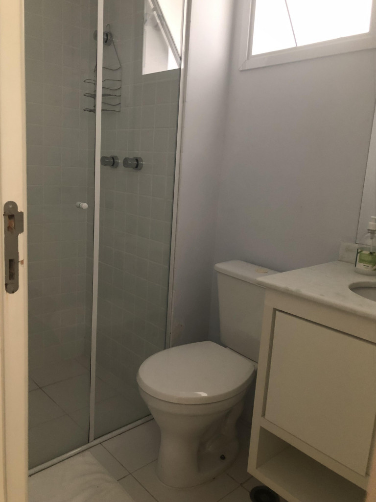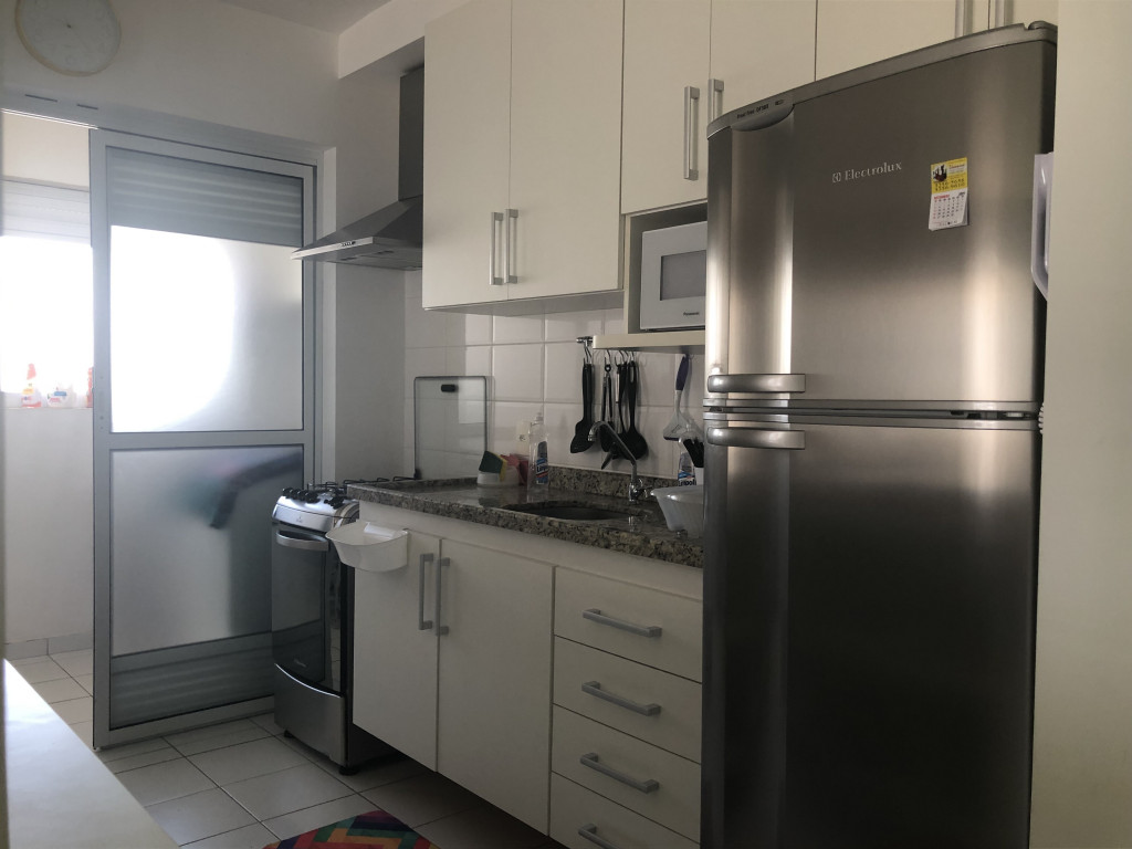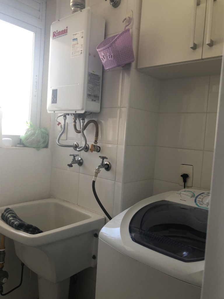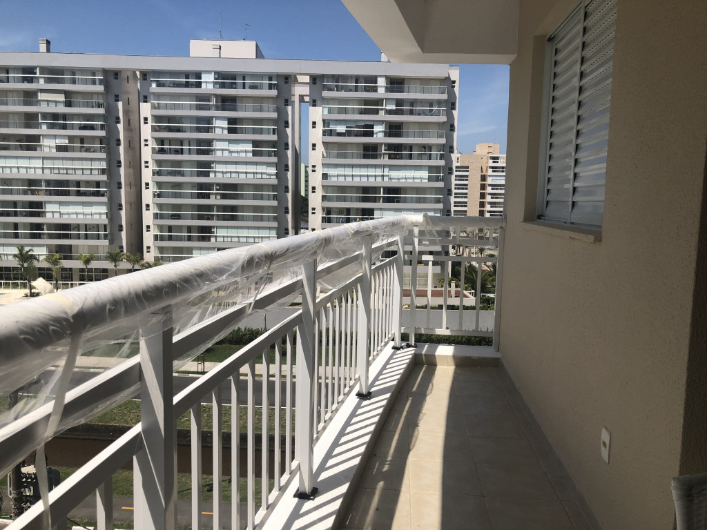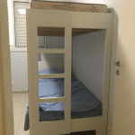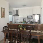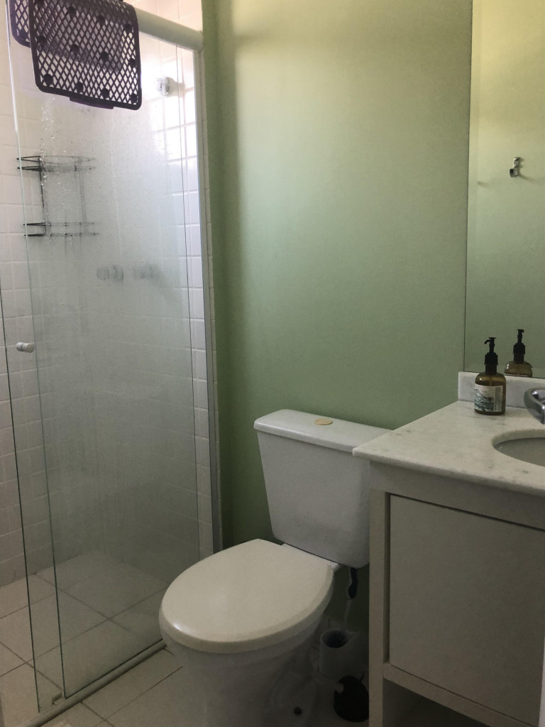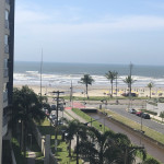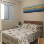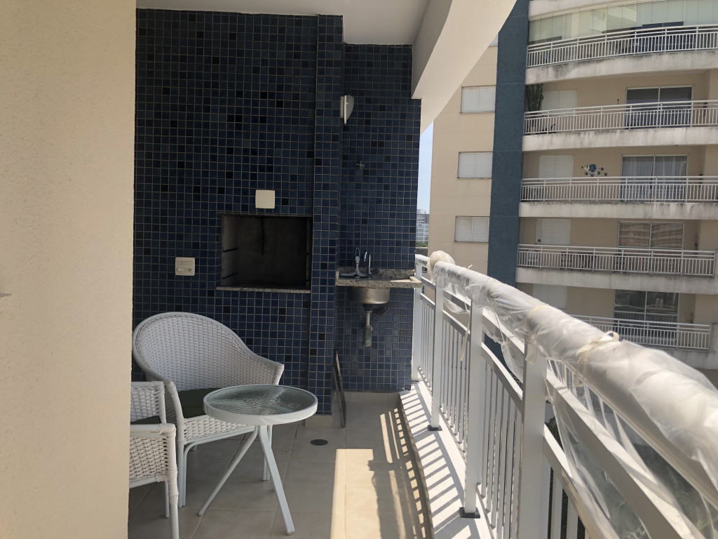 Meu apartamento tem uma suíte e mais um dormitório, um banheiro, sala integrada com a cozinha, área de serviço e varanda com churrasqueira. Tem ventilador de teto em todos os ambientes. Uma vaga de garagem coberta. Na suíte tem uma cama de casal e no outro quarto tem 2 beliches. Acomoda confortavelmente 6 pessoas. Fica a um quarteirão da praia e o condomínio disponibiliza serviço de praia. No condomínio há piscina, mas é preciso trazer atestado médico para usá-la.