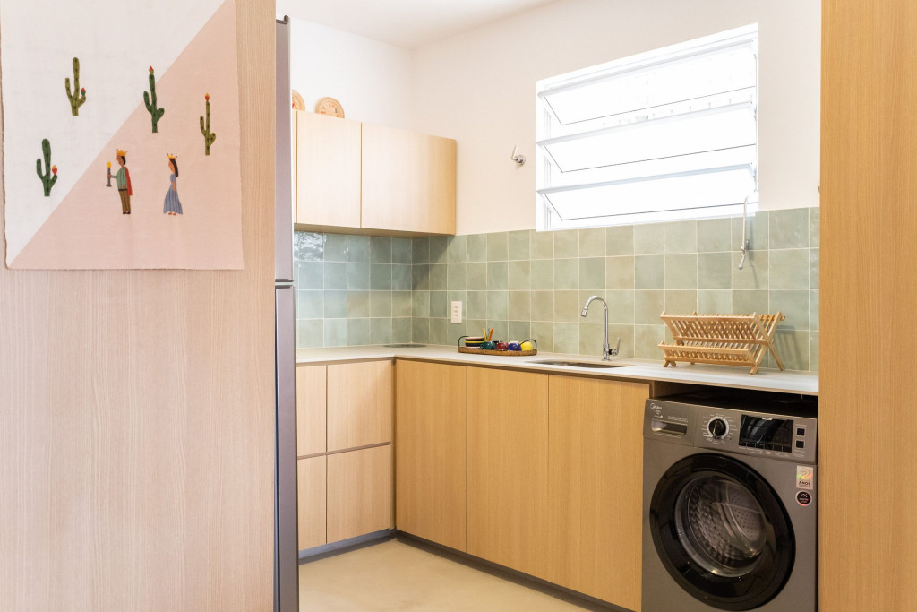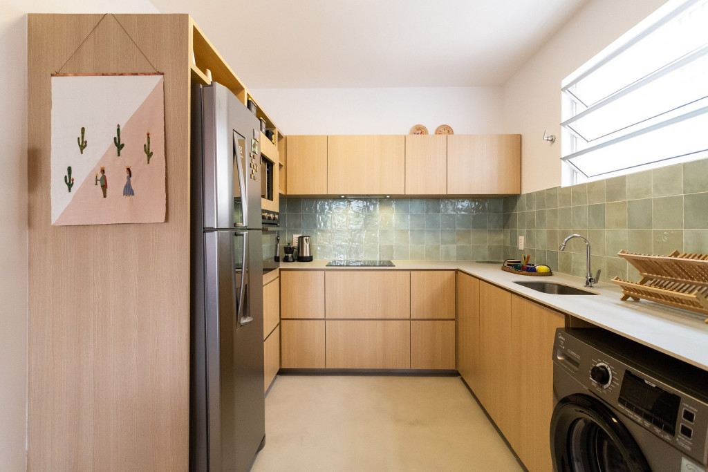 O apartamento dispõe de máquina de lavar e varal de chão.