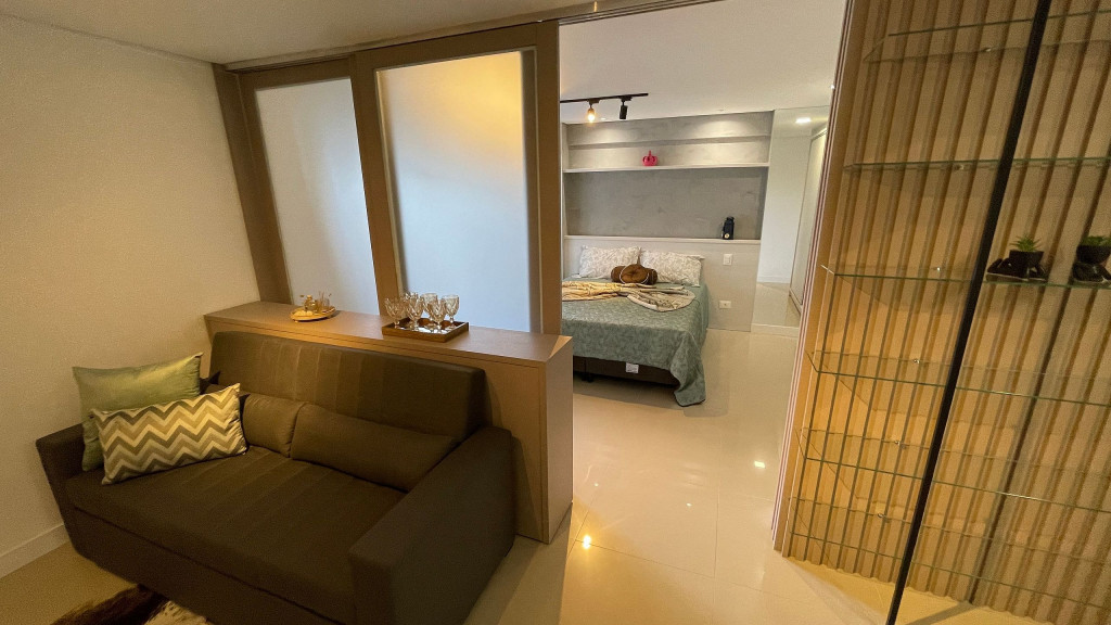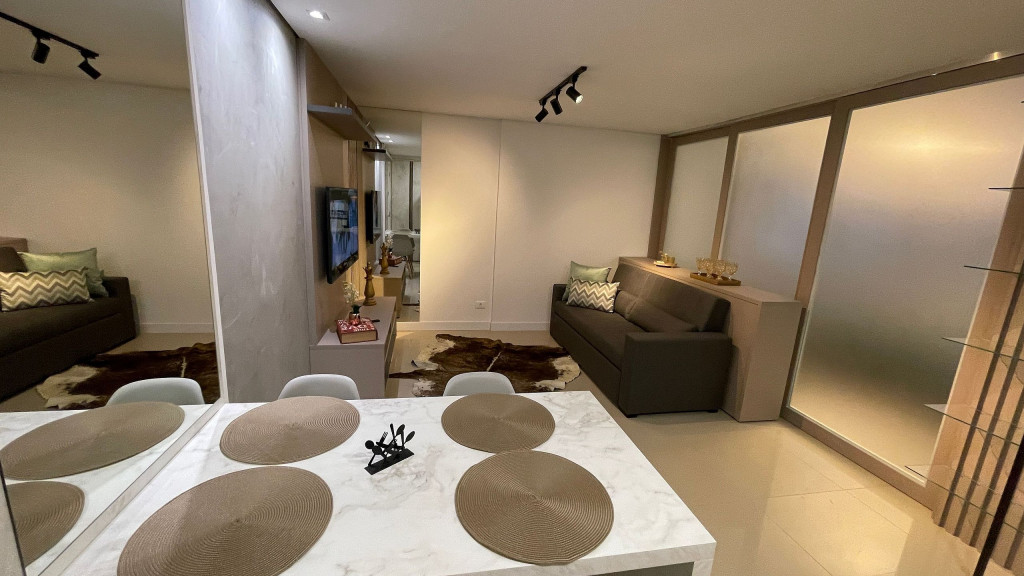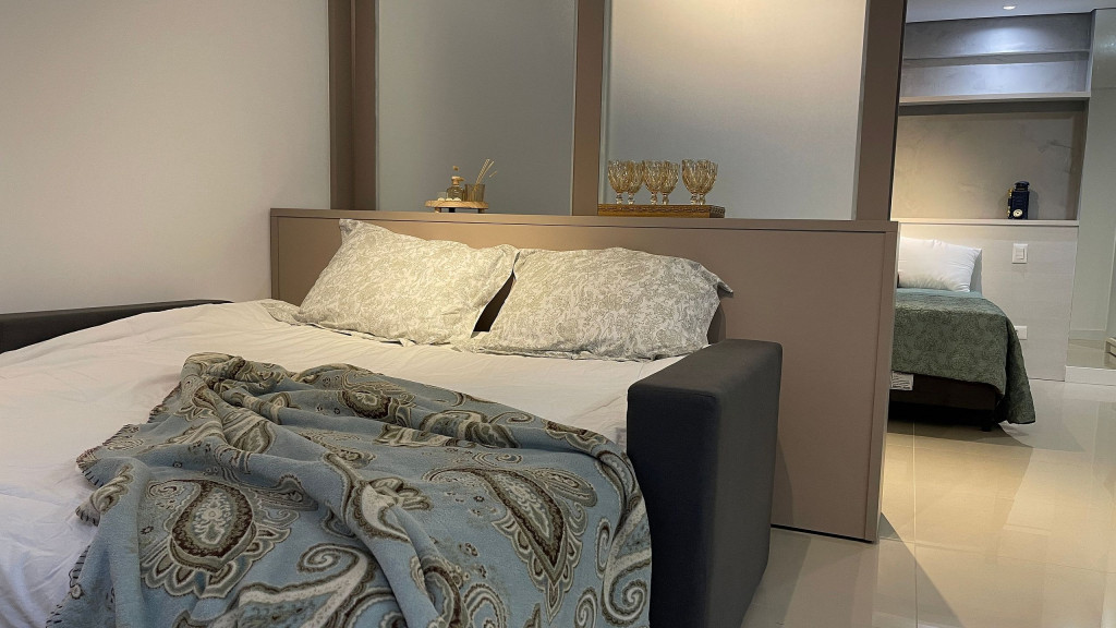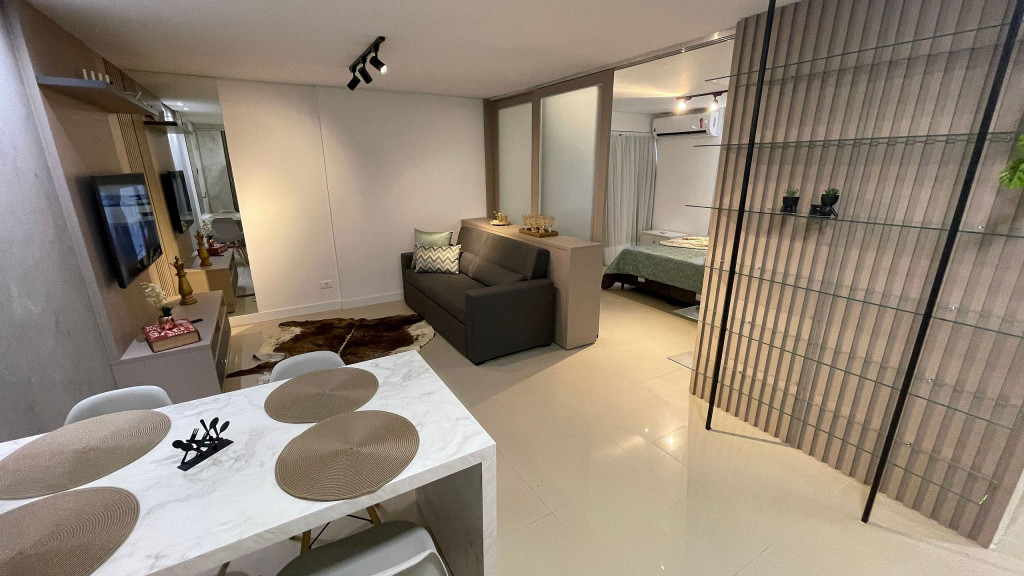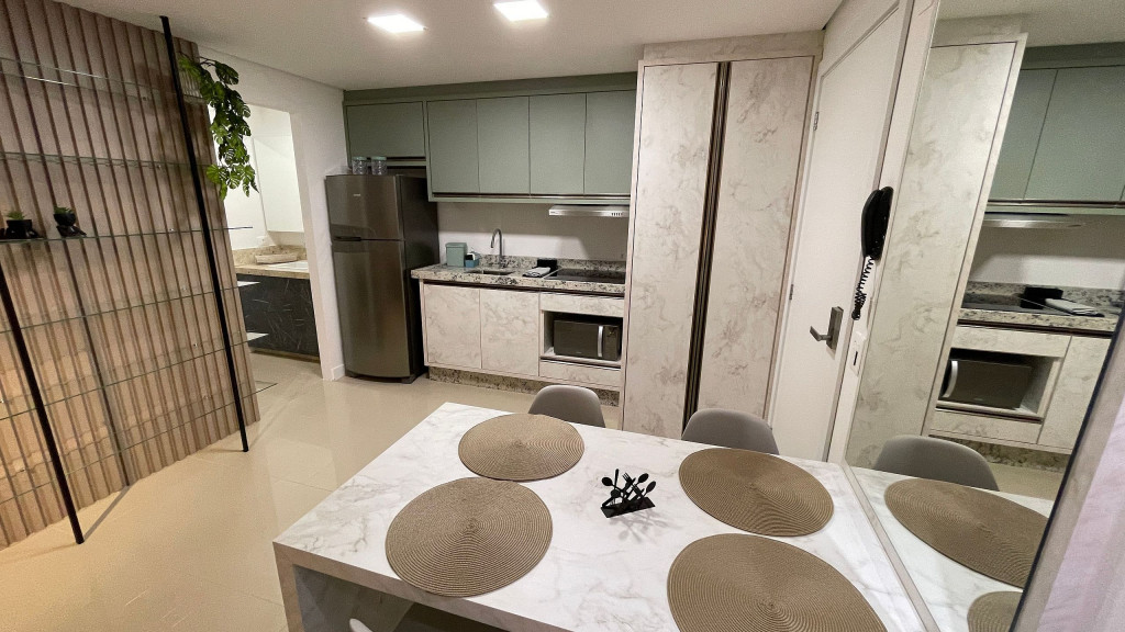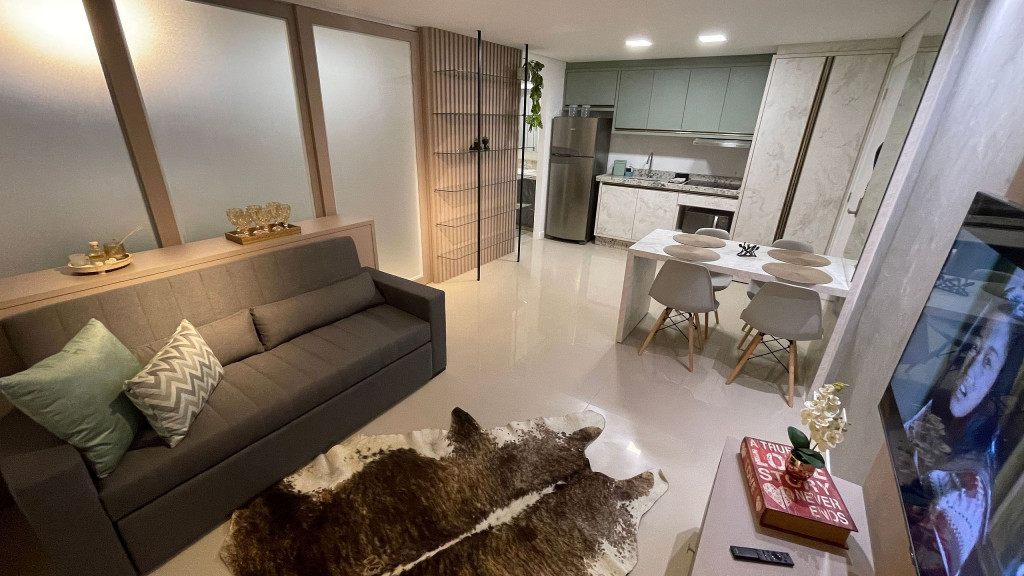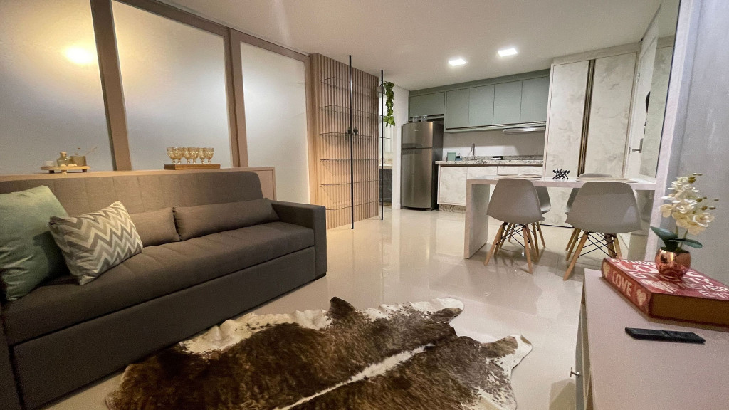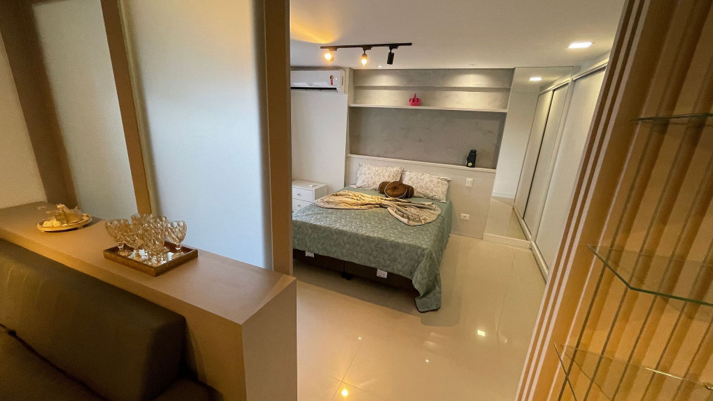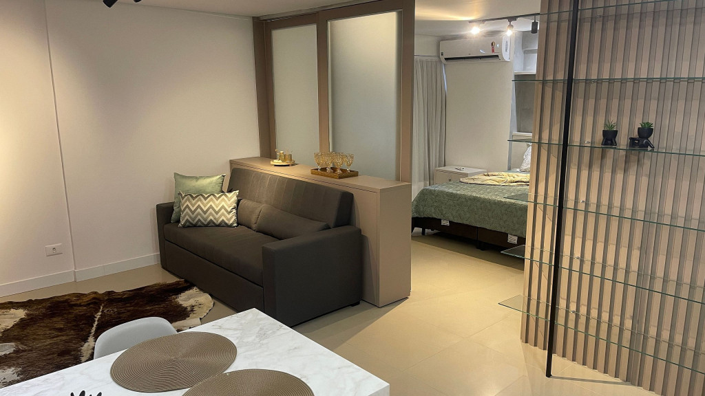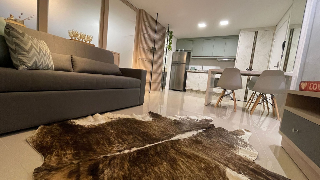 Apartamento moderno com ambiente unificado ou separado por portas e ambientado com muito carinho dispondo de tudo que você precisa para uma hospedagem confortável. Situado a uma quadra da avenida Jorge Schimmelpfeng, no centro de Foz do Iguaçu, possibilitando acesso à pé aos mais famosos bares e restaurantes da cidade (Capitão Bar, Bona Trattoria, Rafain Chopp, Maki Sushi, Imperador dos Camarões, ...).