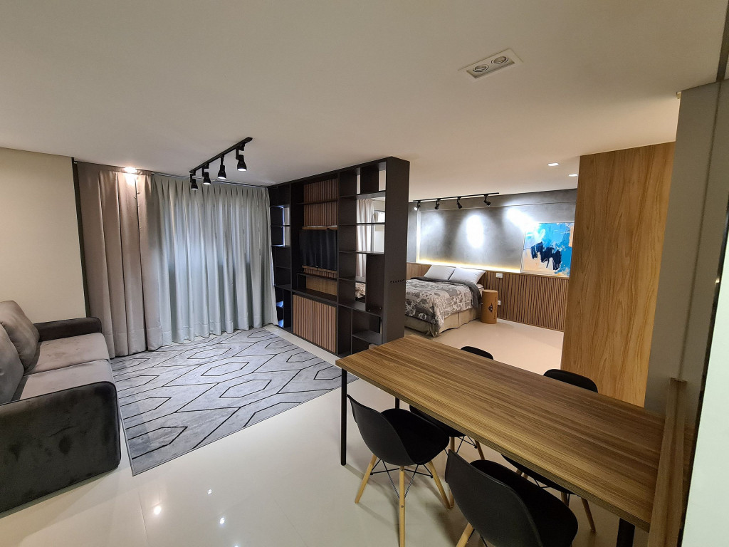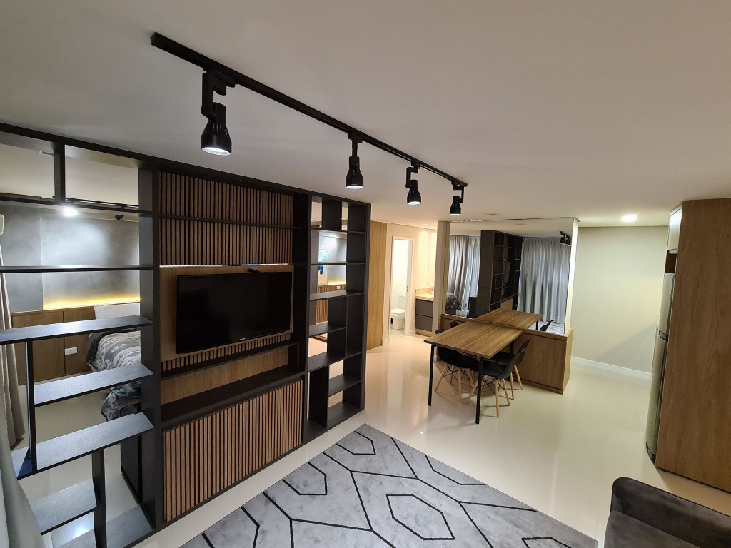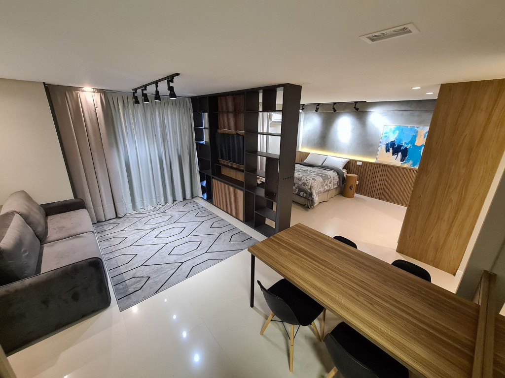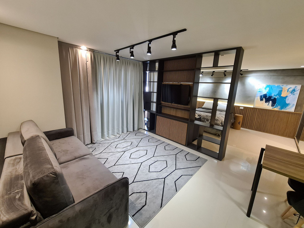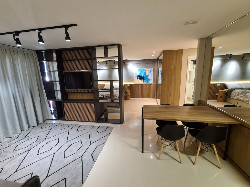 Apto Studio com decoração aconchegante e moderna, equipado com tudo o que você precisa para ficar confortável durante sua hospedagem. A uma quadra da avenida Jorge Schimmelpfeng, no centro de Foz do Iguaçu. Próximo a bares, restaurantes, farmácias e com uma padaria ao lado. De fácil acesso aos pontos turísticos seja por transporte publico, taxi ou qualquer meio de transporte, auxiliando para quem não conhece a cidade.