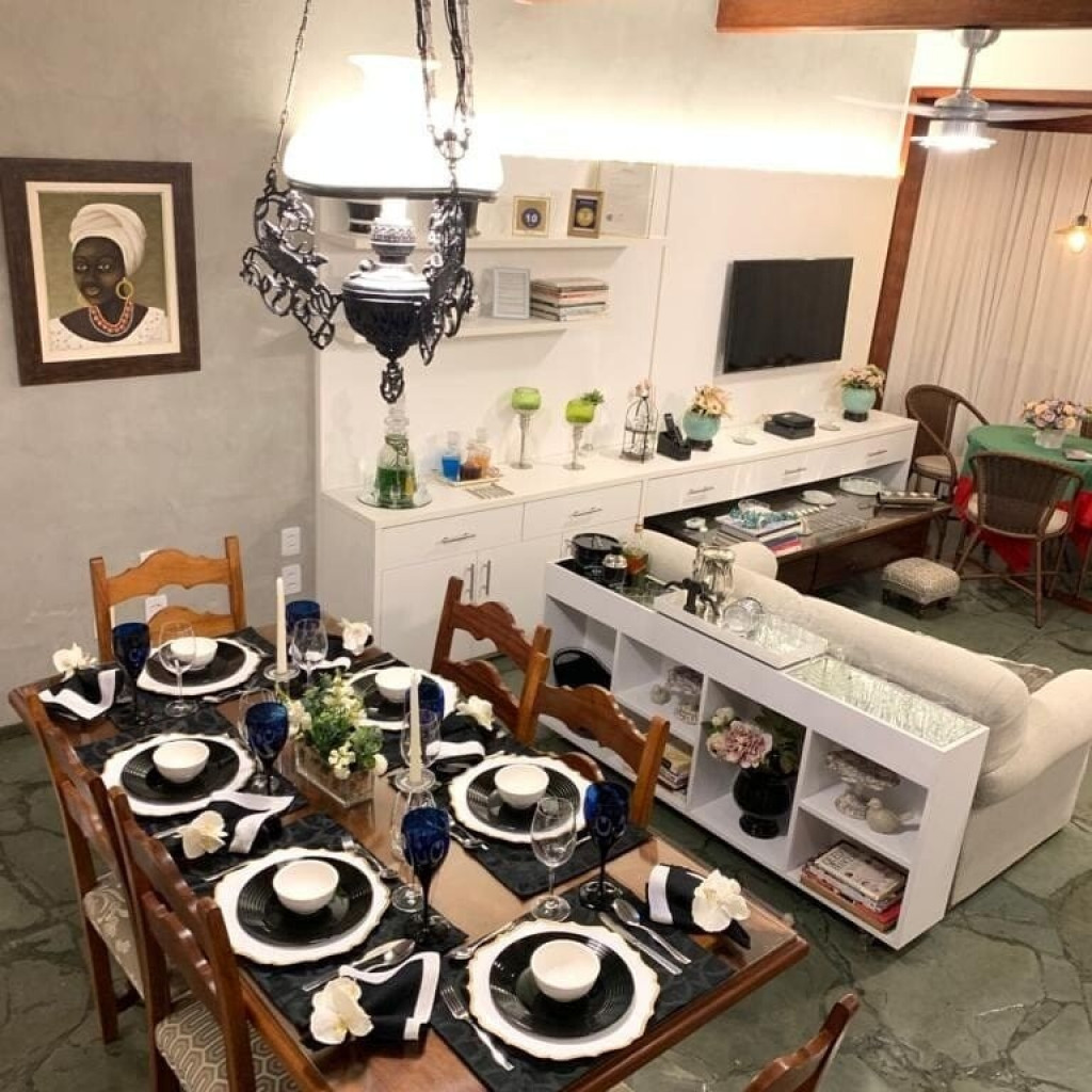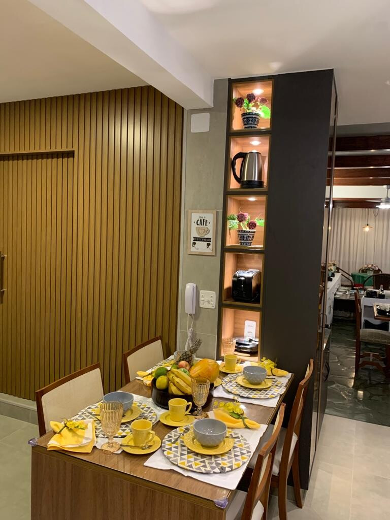 O hóspede tem a opção de usar a cozinha normal sem a churrasqueira e as panelas eletricas digitais programaveis, louças, talheres e copos finos, toalhas, jogos americanos, porta guardanapos, travessas e pratos de bolo de louça e vidro wolff.