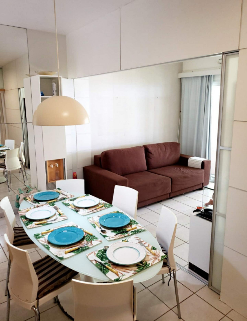 Apartamento com 67 m² totalmente equipado com 2 quartos, sala, 2 TVs, ar-condicionado em todos os ambientes.