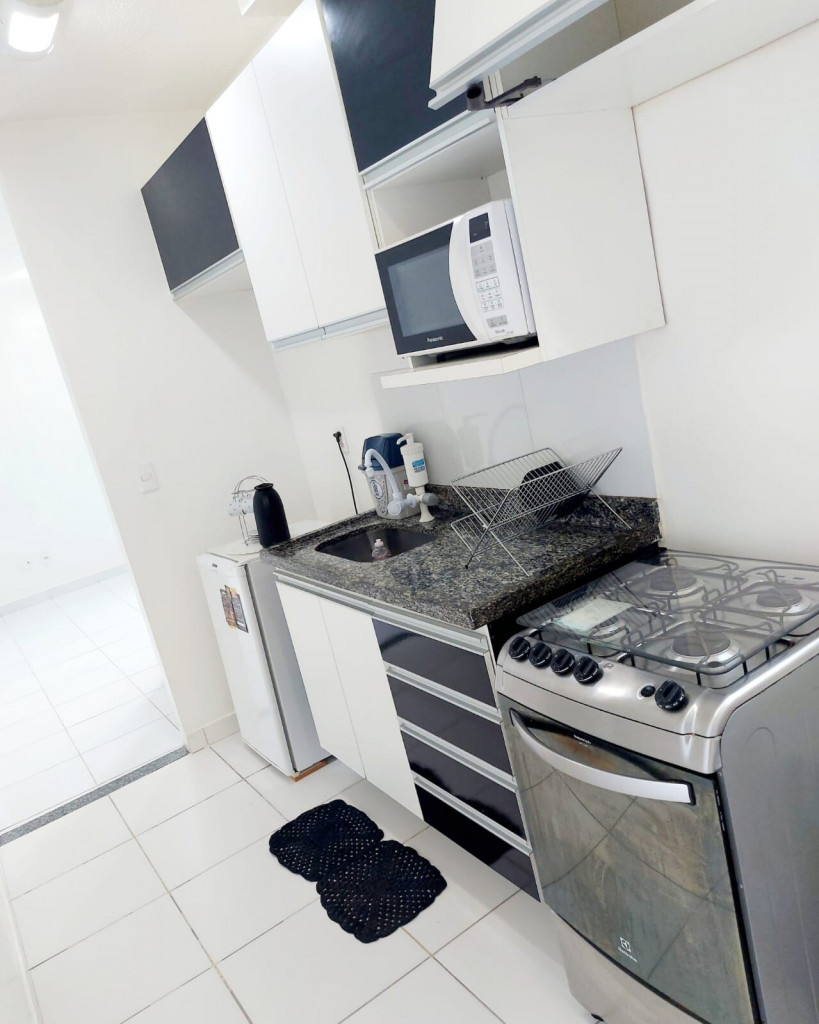 Apartamento térreo com mobília aconchegante e moderna, com todo conforto para você.