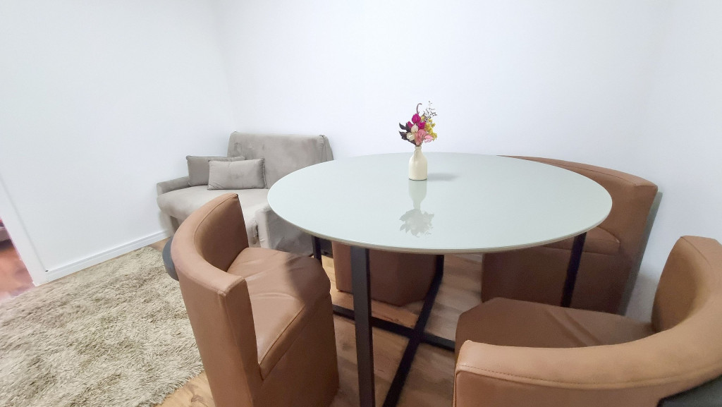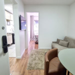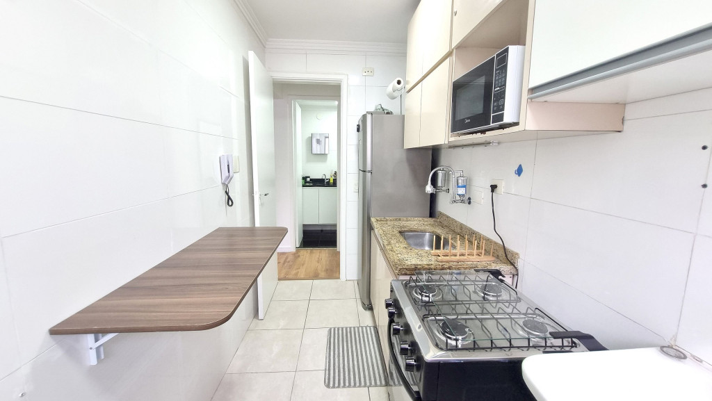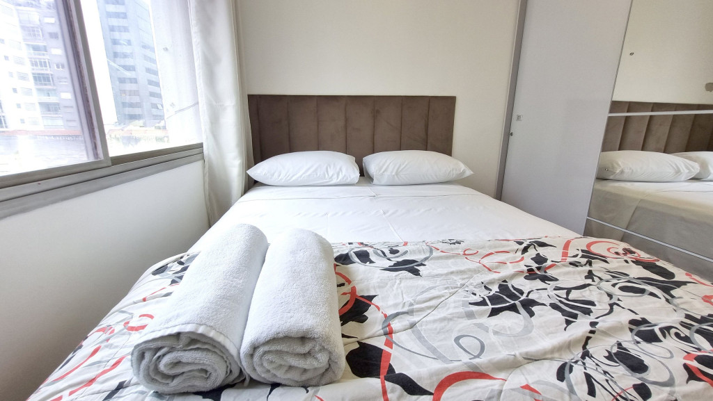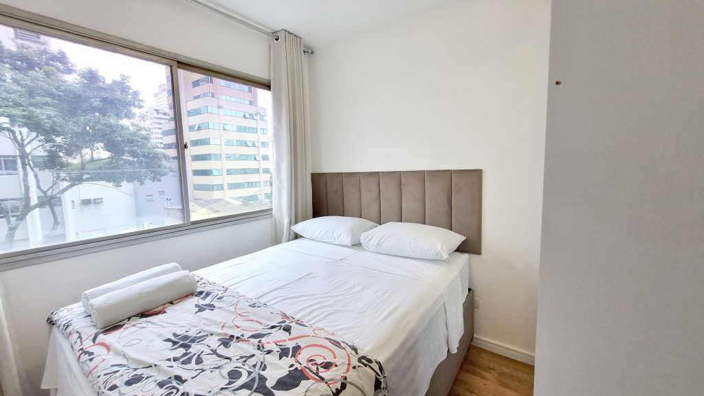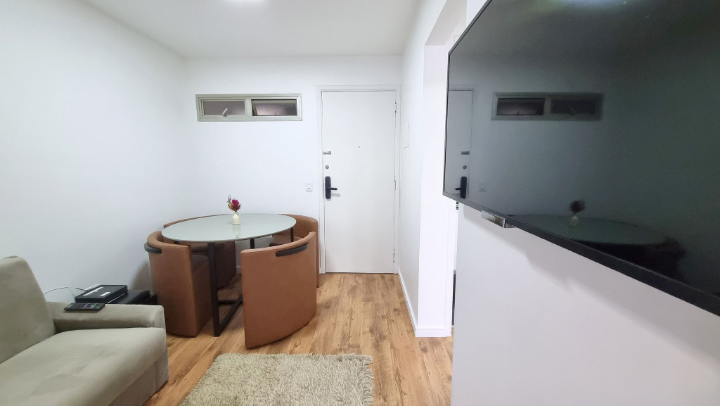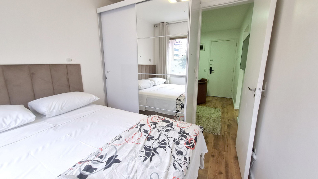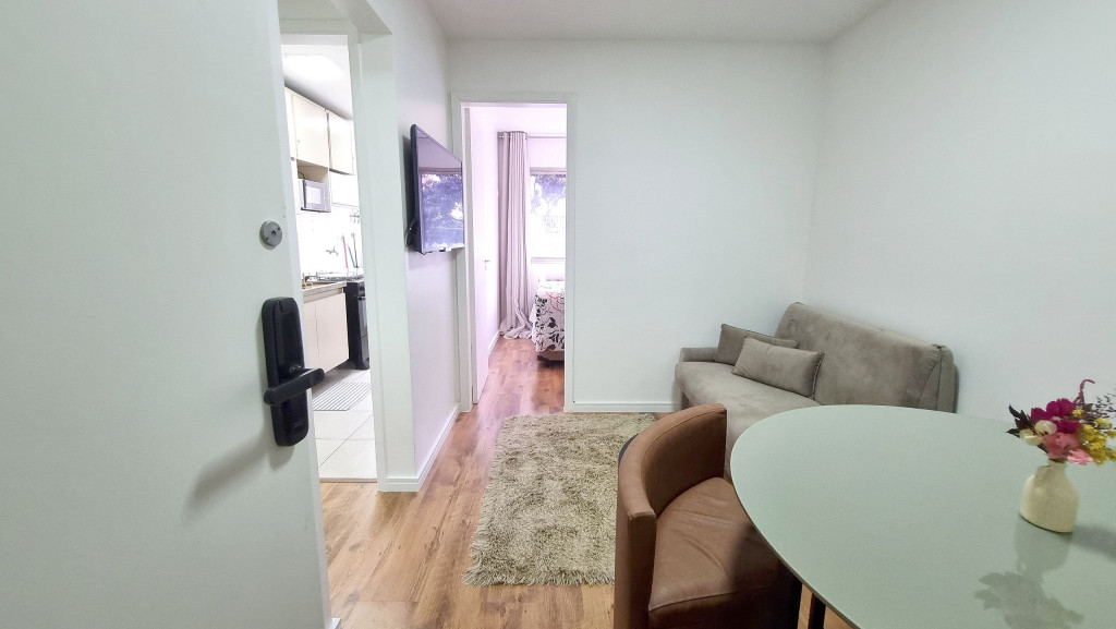 Com vista do 4° andar, o apartamento de 1 quarto tem um design clean e funcional para até 3 pessoas.