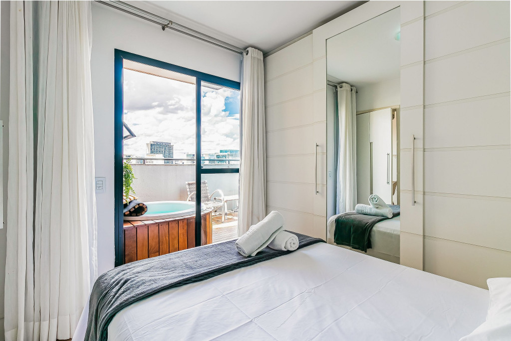 Apartamento com 1 quarto localizado no coração da Vila Olímpia perfeito para até 2 pessoas. Além de um ambiente super espaçoso que conta com cozinha, sala ampla e quarto separado, o destaque fica para o ofurô privativo na área externa do apartamento. Imagine desfrutar uma água quentinha com um vinho e uma vista da zona sul aqui do 18 andar. Seja no frio no nosso ofurô ou no calor, o apto também conta com ar condicionado e uma vaga de garagem.Será um prazer receber você nesse baita apê!