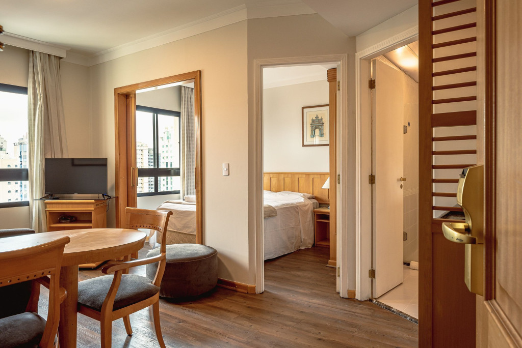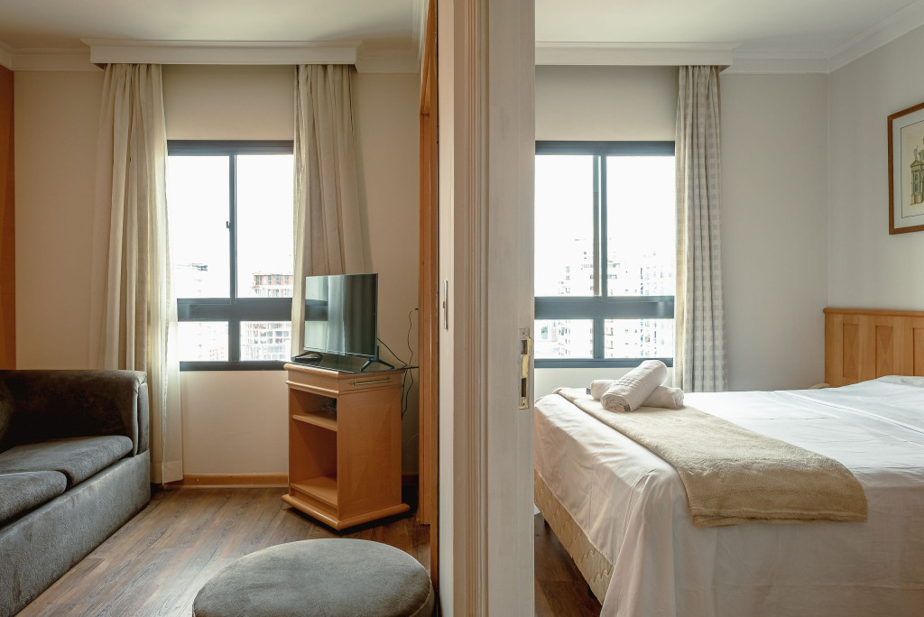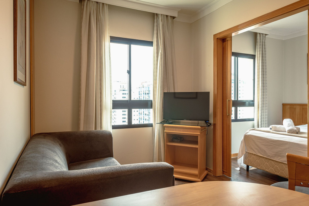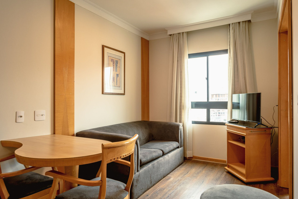 Em uma das localizações mais privilegiadas da cidade no complexo hoteleiro Mercure Excellent Flats. Apto espaçoso, 36 m² para até 2 pessoas, com cozinha compacta e um banheiro bem espaçoso, O complexo conta com uma piscina aquecida, sauna, serviço de quarto e camareiras diariamente.