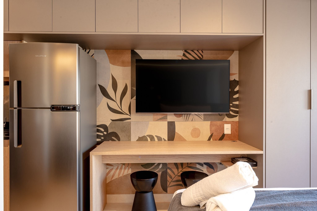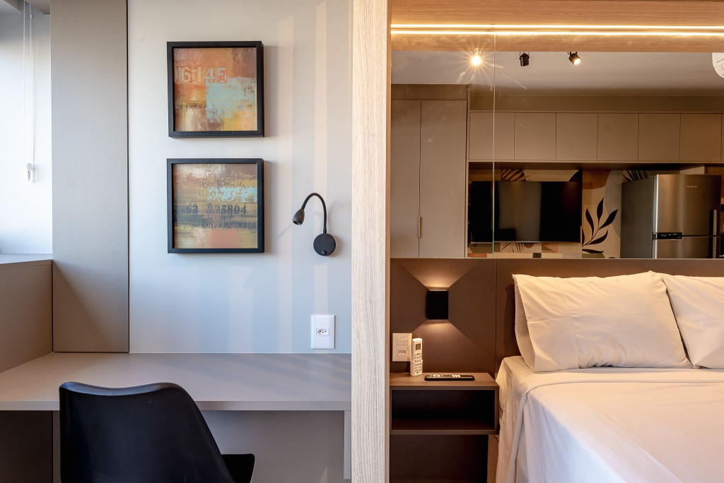 O apartamento conta com ar condicionado, Smart TV e mesa para trabalho/refeição. Restaurantes, mercados, conveniências estão bem acessíveis e próximos do apartamento.