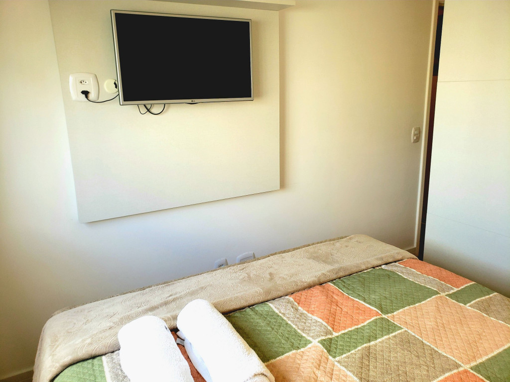 Apartamento com 80 metros quadratos, 3 quartos sendo 1 suíte.- Quarto 1: 1 cama de solteiro dobrável e 1 colchão de solteiro avulso;- Quarto 2: 1 cama de viúva (128x188);- Suíte: 1 cama queen size;- Roupas de cama (lençóis, fronhas, travesseiros e cobertores) e banho inclusas (sem troca);- Máquina de Café Nespresso;- Máquina de Lavar-louça;- Lava e Seca Samsung;- Forno elétrico e microondas embutidos;- Cooktop de indução;- Duchas a gás e com bastante pressão;- TV na sala e na suíte (sem cabo e canais abertos / apenas Netflix e Youtube);- Piscina no condomínio;- Brinquedoteca no condomínio;- Playground infantil no condomínio;- Salão de Jogos no condomínio;- Academia no condomínio;