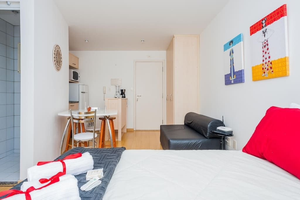 Apt confortável c/ tudo que precisas p/ a sua estada. A 4 quadras do metro, bem localizado, vizinhança segura, próximo a Av. Paulista possui: cozinha completa, piscina, sauna, academia, sala de estudos e reuniões, garagem e portaria 24h. Lavanderia (pago a parte).