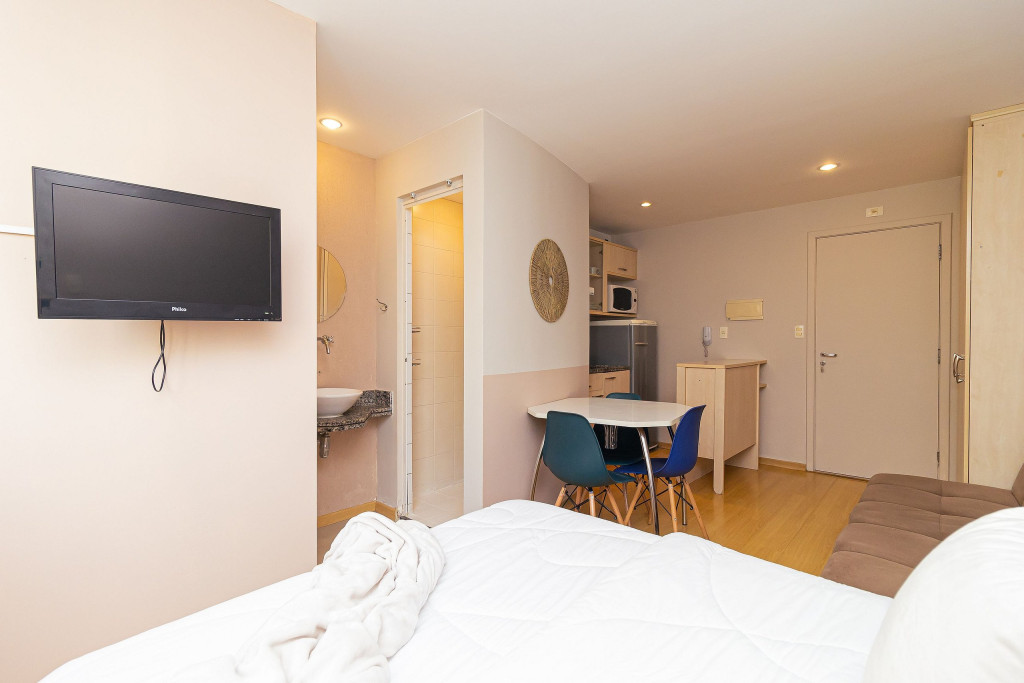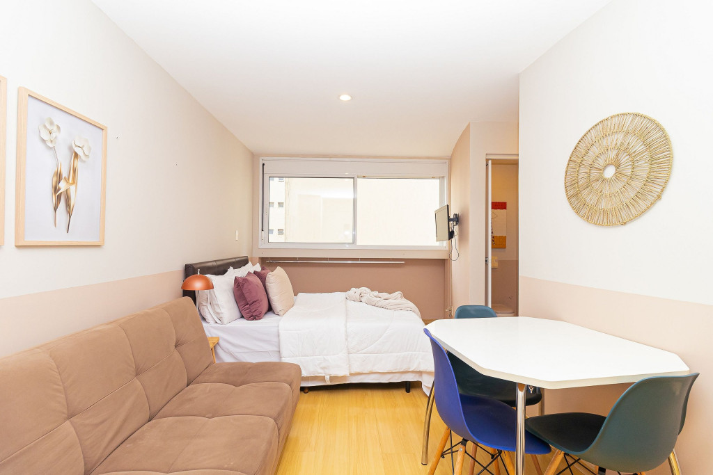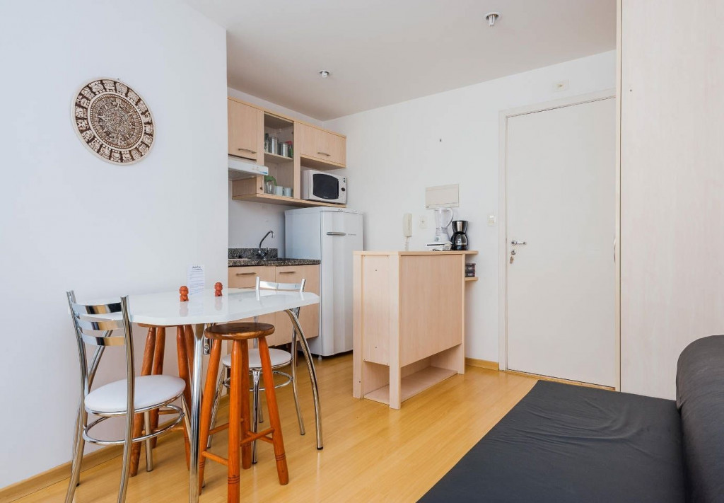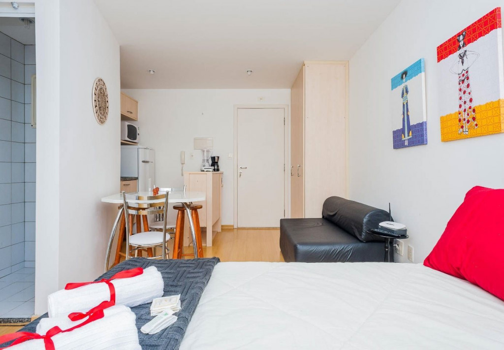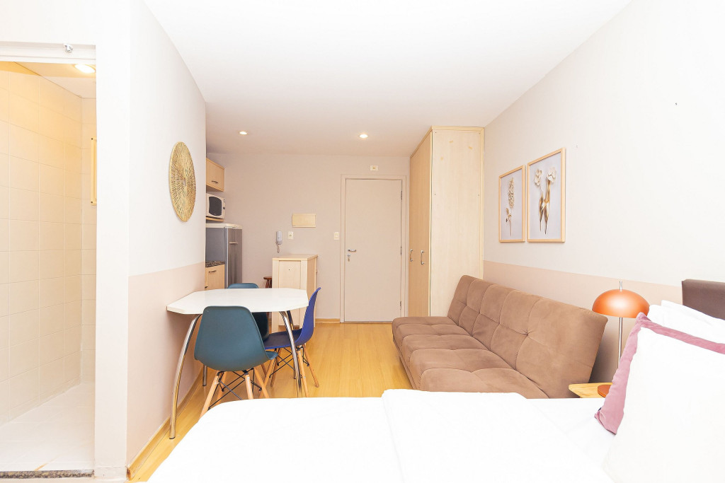Esse decorado e funcional Studio Open Concept de 29 m2 fica em um prédio de alto padrão estrategicamente localizado próximo à Av. Paulista, metrô, Rua Augusta e Consolação e não está longe do centro.