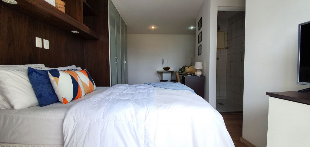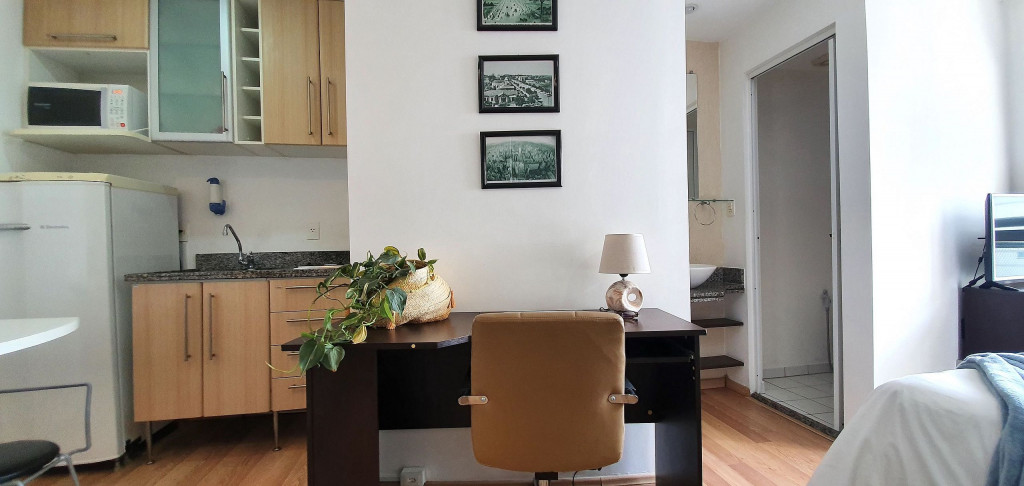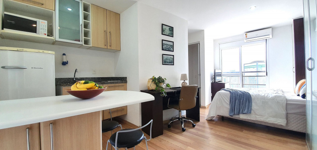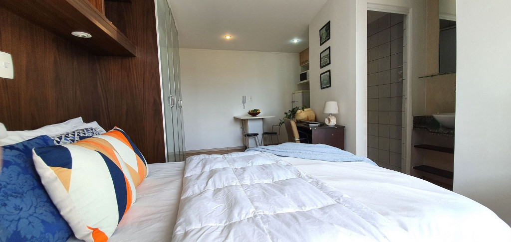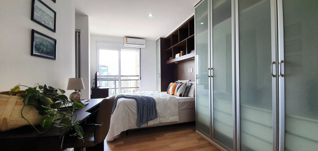 This well decorated open concept studio is strategically located in a residential building near Av. Paulista, subway, Rua Augusta and Consolação and also very close to downtown