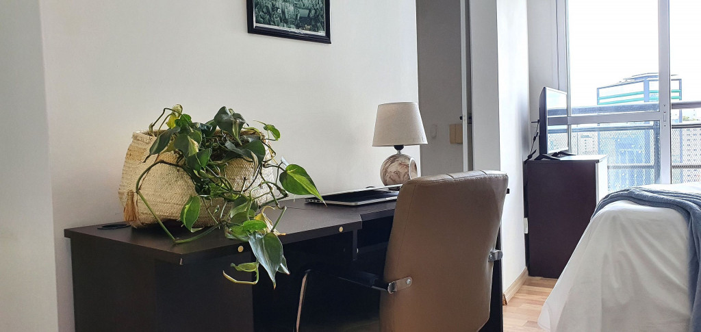 In addition, it is on a high floor and features a balcony with incredible views of the city, great WiFi signal and a flat screen TV.