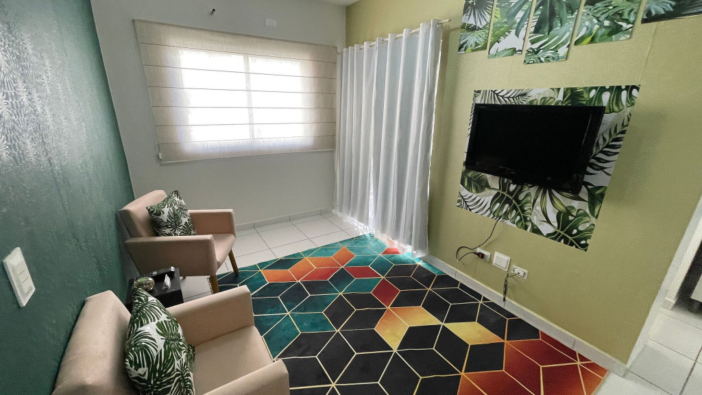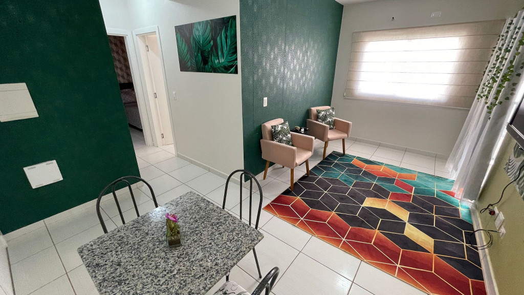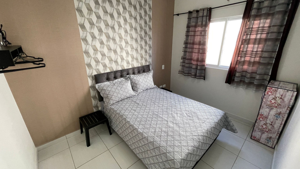 O apartamento conta com dois quartos, sendo um com cama de casal e outro com uma bicama de solteiro. Cozinha equipada, churrasqueira, uma vaga de garagem coberta, wi-fi, condomínio com portaria e segurança 24hrs. Disponibilizamos roupa de cama e banho.Perto de ponto de ônibus, restaurantes, supermercados, farmácias, pontos de taxi e trajeto para os pontos turísticos mais conhecidos de Foz.Obs: Somente um quarto contém ar condicionado.