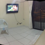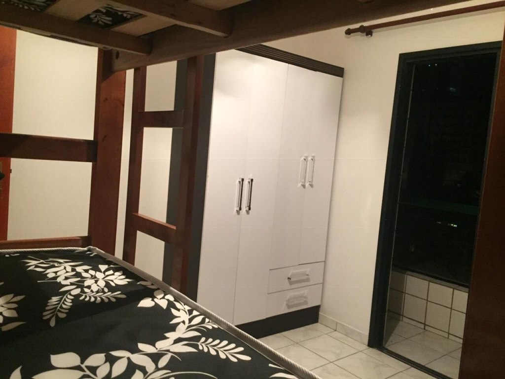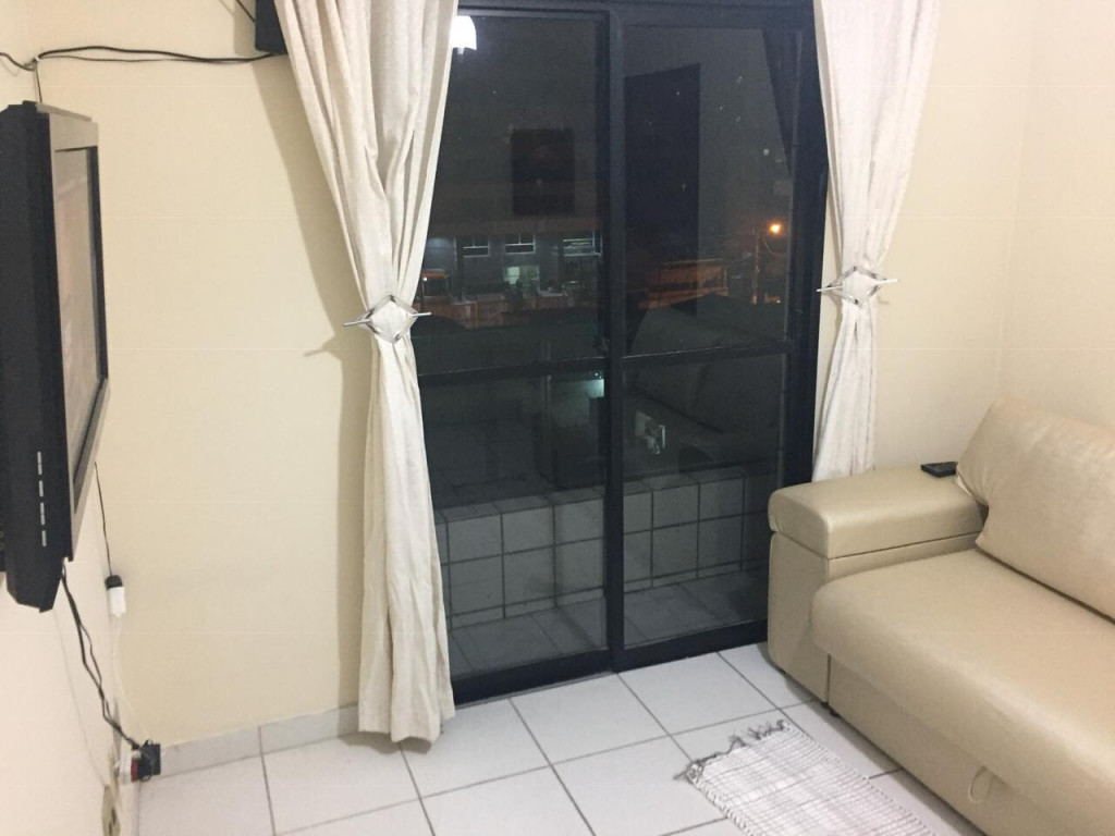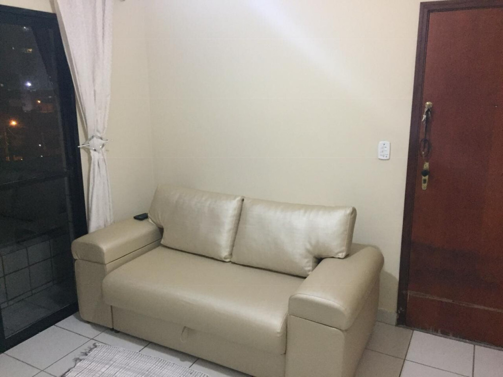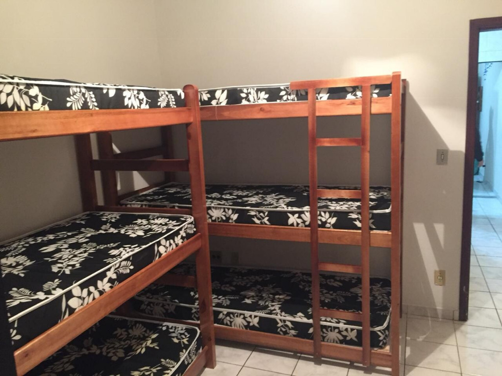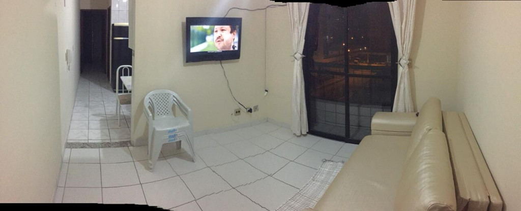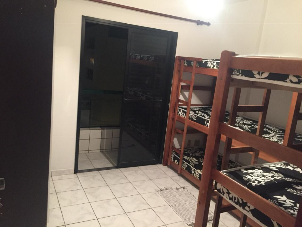 APTO 1 DORMITÓRIO CONTENDO 2 TRILICHES, 1 ARMÁRIO GRANDE E VARANDA. SALA AMPLA COM SACADA COM SOFÁ CORINO 2 LUGARES E TV DE PLASMA. COZINHA COMPLETA COM MESA E 3 CADEIRAS.