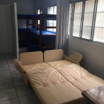 APTO 1 DORMITÓRIO CONTENDO 2 TRILICHES. SALA AMPLA COM SACADA COM SOFÁ CAMA CORINO CASAL E TV DE PLASMA.