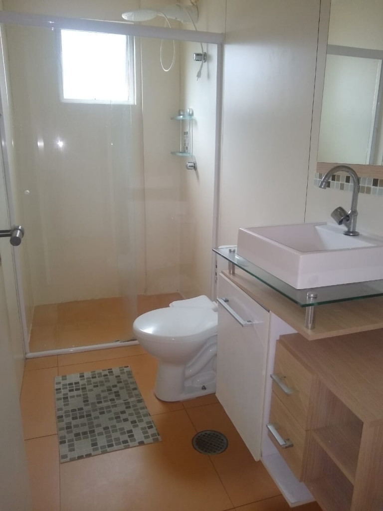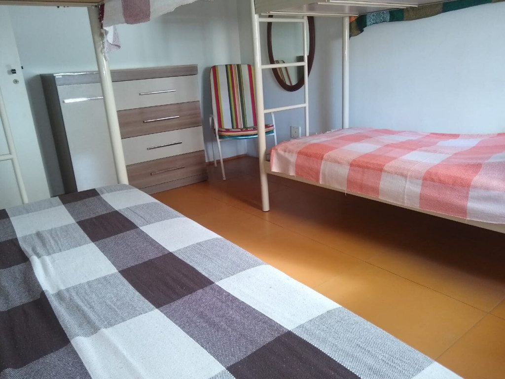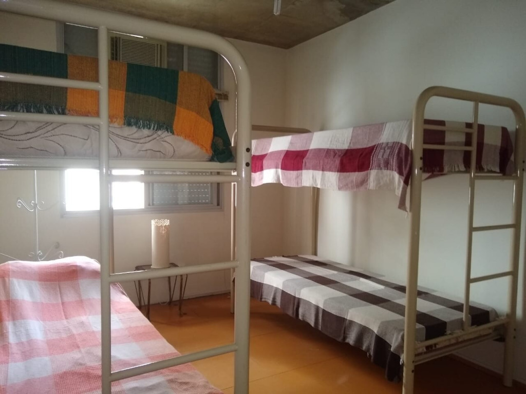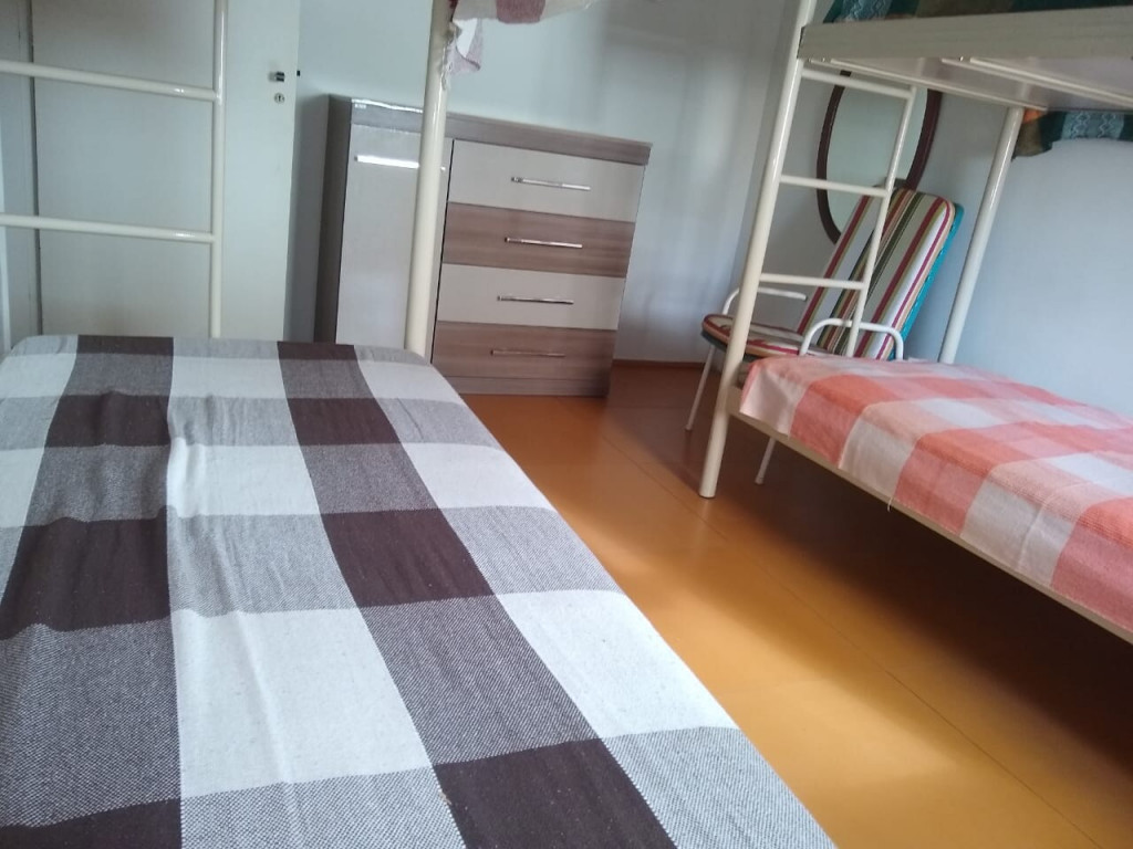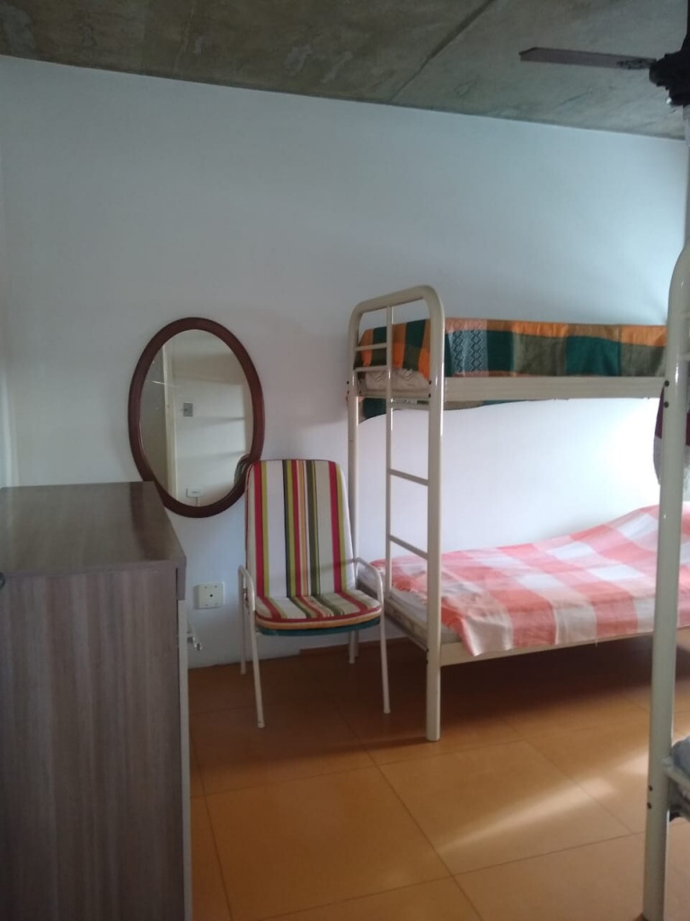 APTO 2 DORMS, 1 DORM COM AR CONDICIONADA E 2 BELICHES E OUTRO DORM COM 1 BELICHE, 1 CAMA DE SOLTEIRO, VENTILADOR DE TETO E 2 COLCHÕES AVULSOS . 1 BANHEIRO SOCIAL COM BOX E SECADOR DE CABELO.