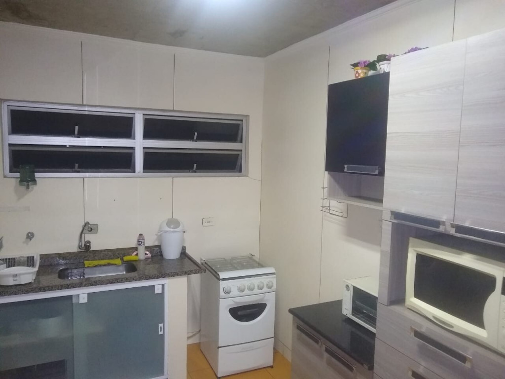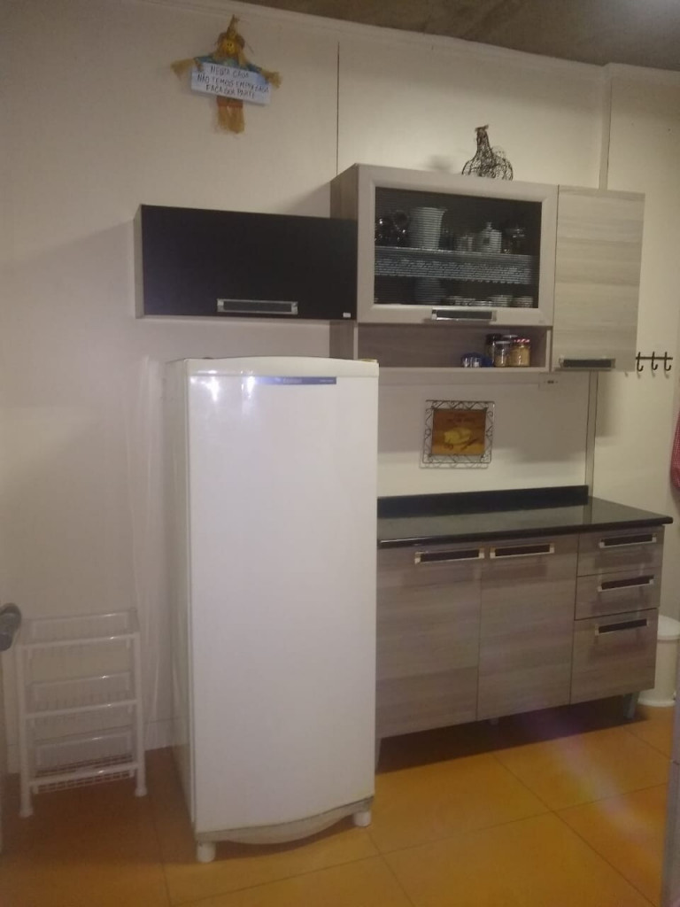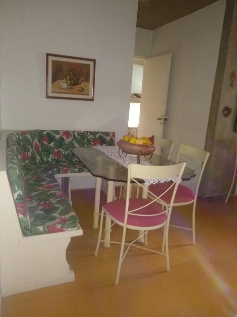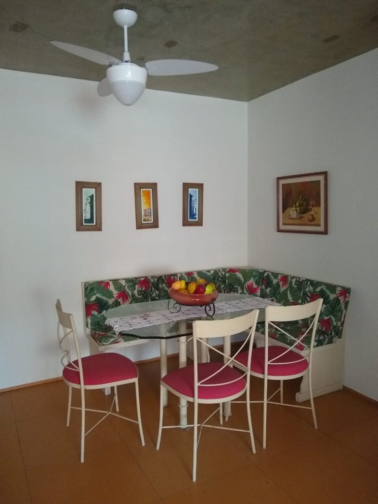 SALA AMPLA E AREJADA COM SOFÁ E 2 LUGARES E MESA COM 4 CADEIRAS. COZINHA COMPLETA.