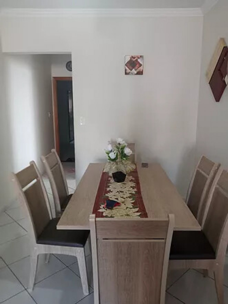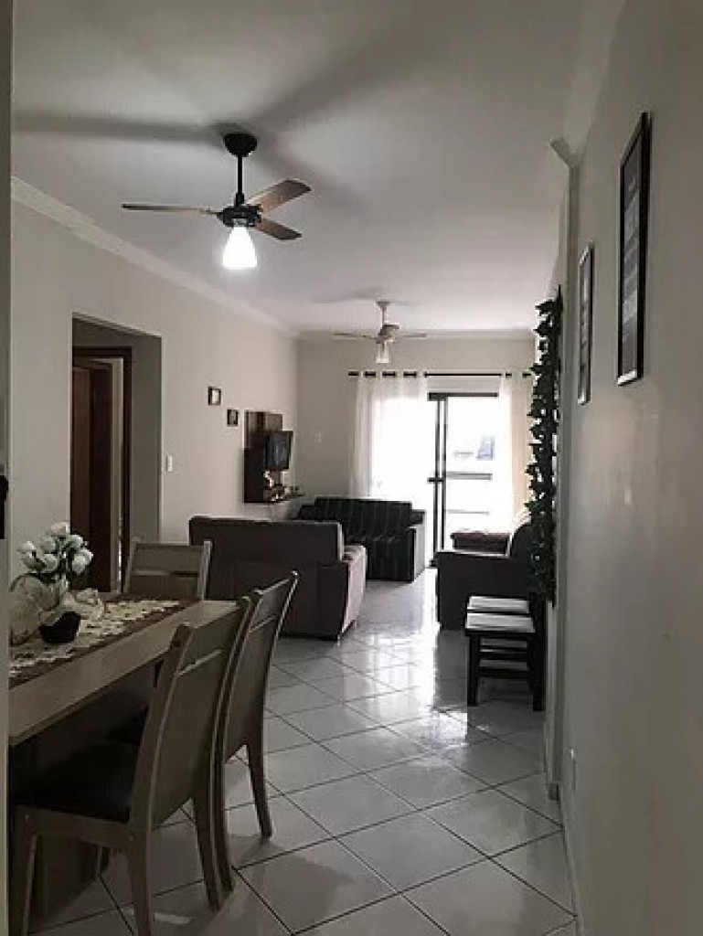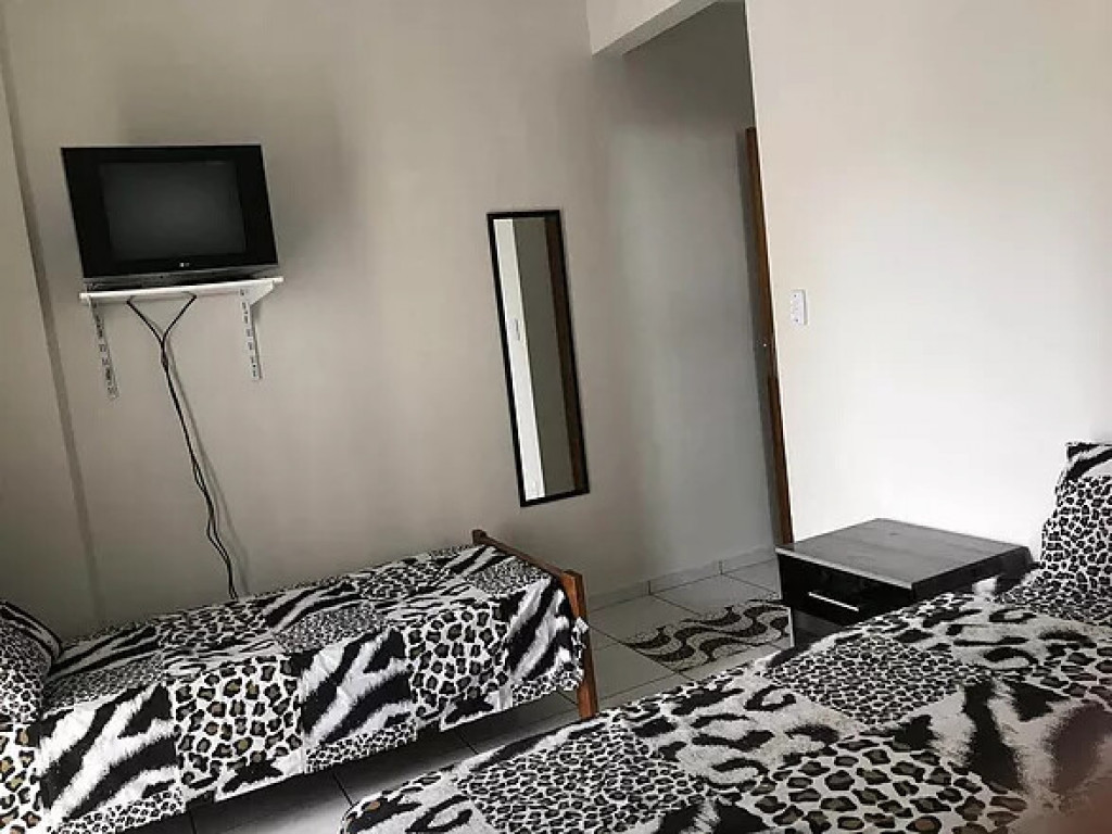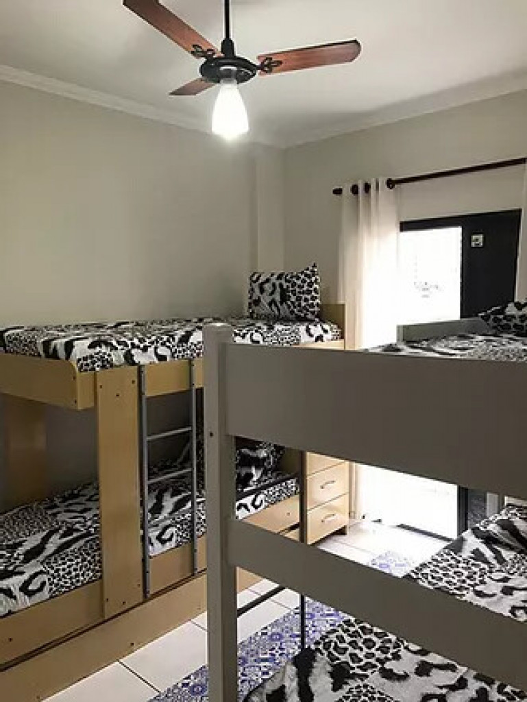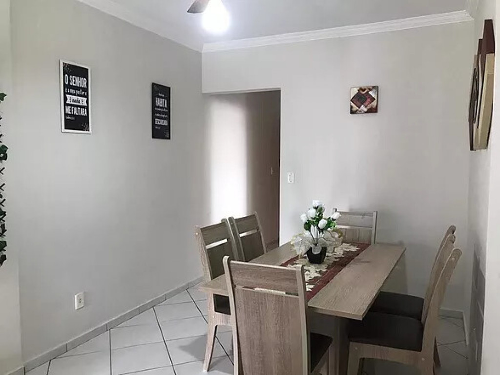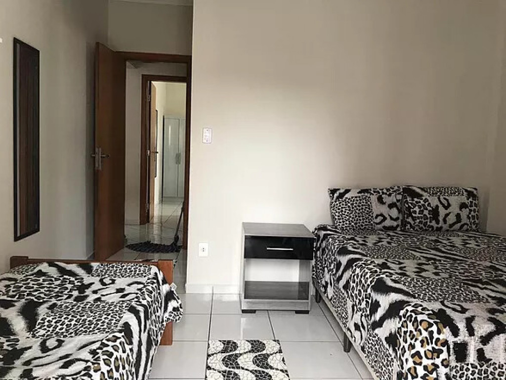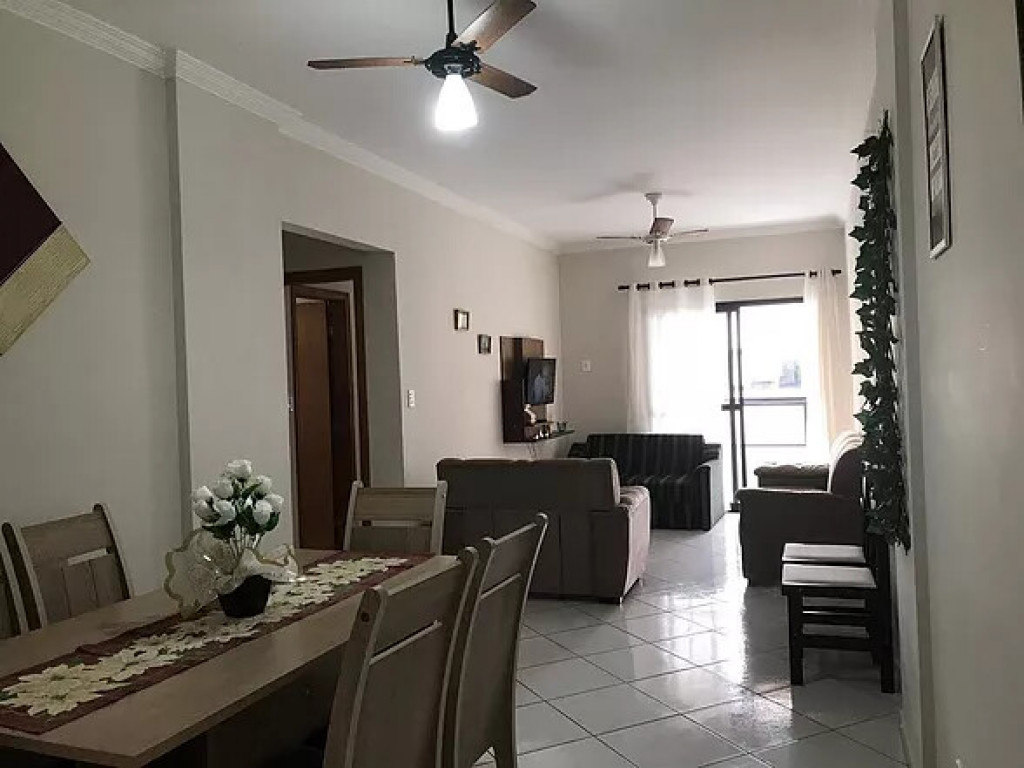 02 dormitórios grandes, 01 suíte, 03 sacadas, Banheiro social, Sala com sofá, Mesa e cadeiras, Cozinha c/ utensílios, Área de serviço (varal), Oferece Roupa de cama.
