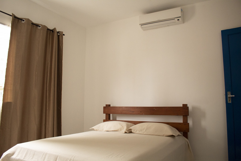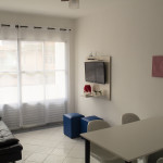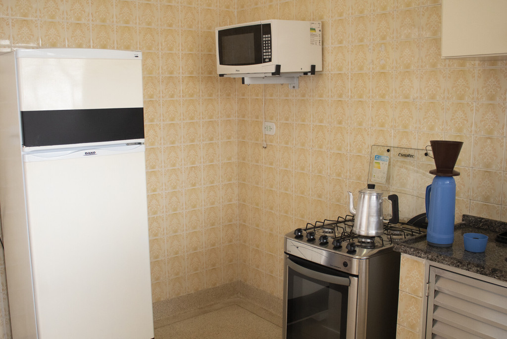 O ap. é bem arejado e iluminado. Tem cozinha equipada, ventilador de teto na sala, ar condicionado no quarto, Wi-Fi e a TV tem canais abertos, além de vaga na garagem.