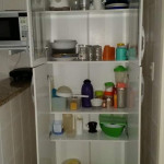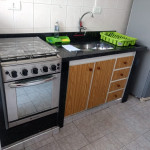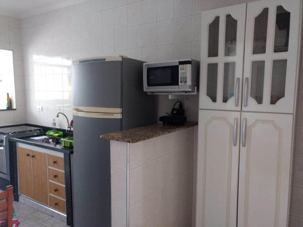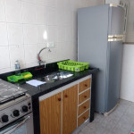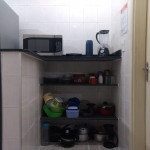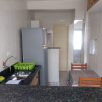Cozinha completamente equipada com mesa / cadeiras, fogão, geladeira, microondas, liquidificador, sanduicheira / mini grill, pratos, copos, talheres, panelas e etc.